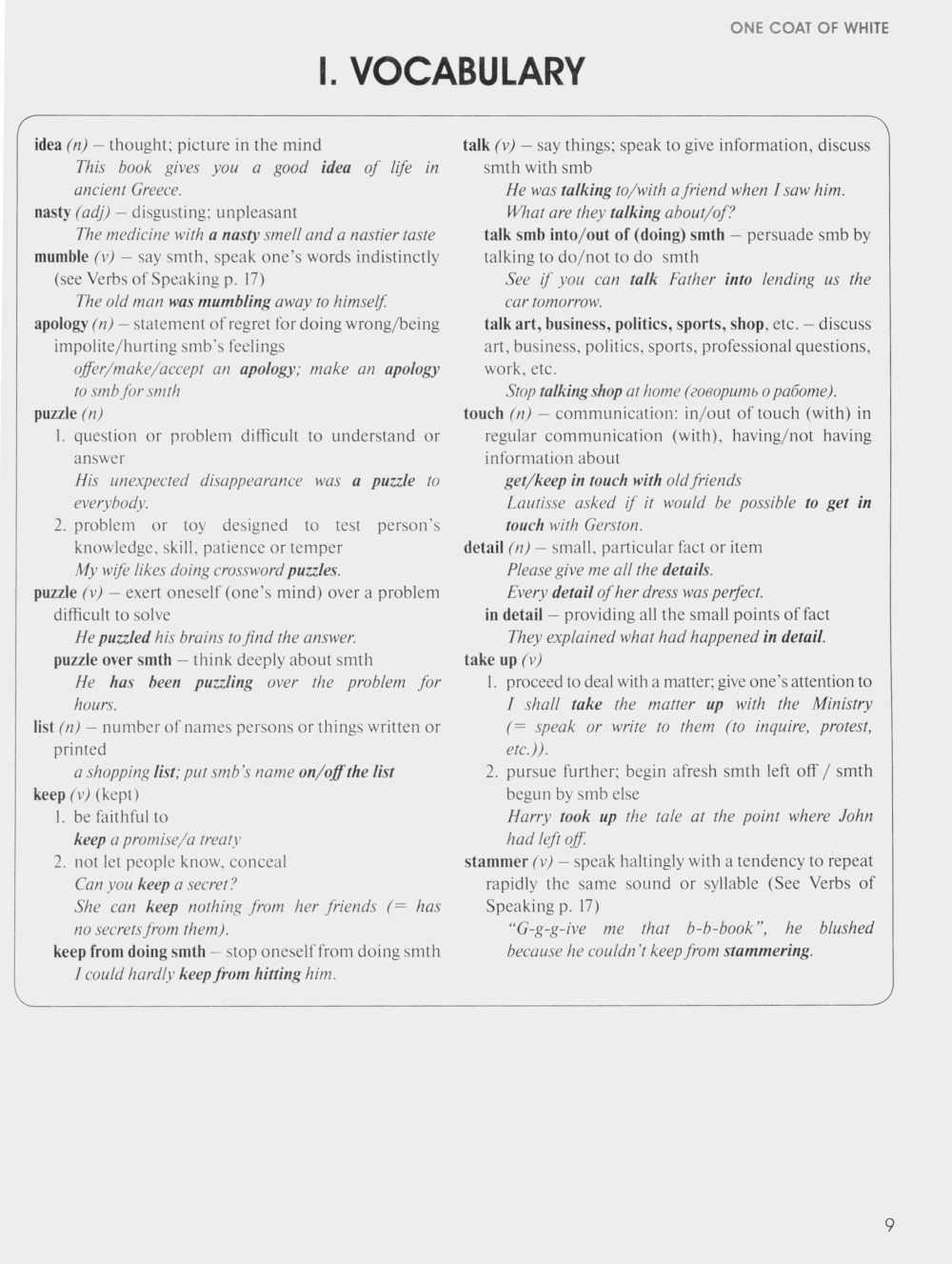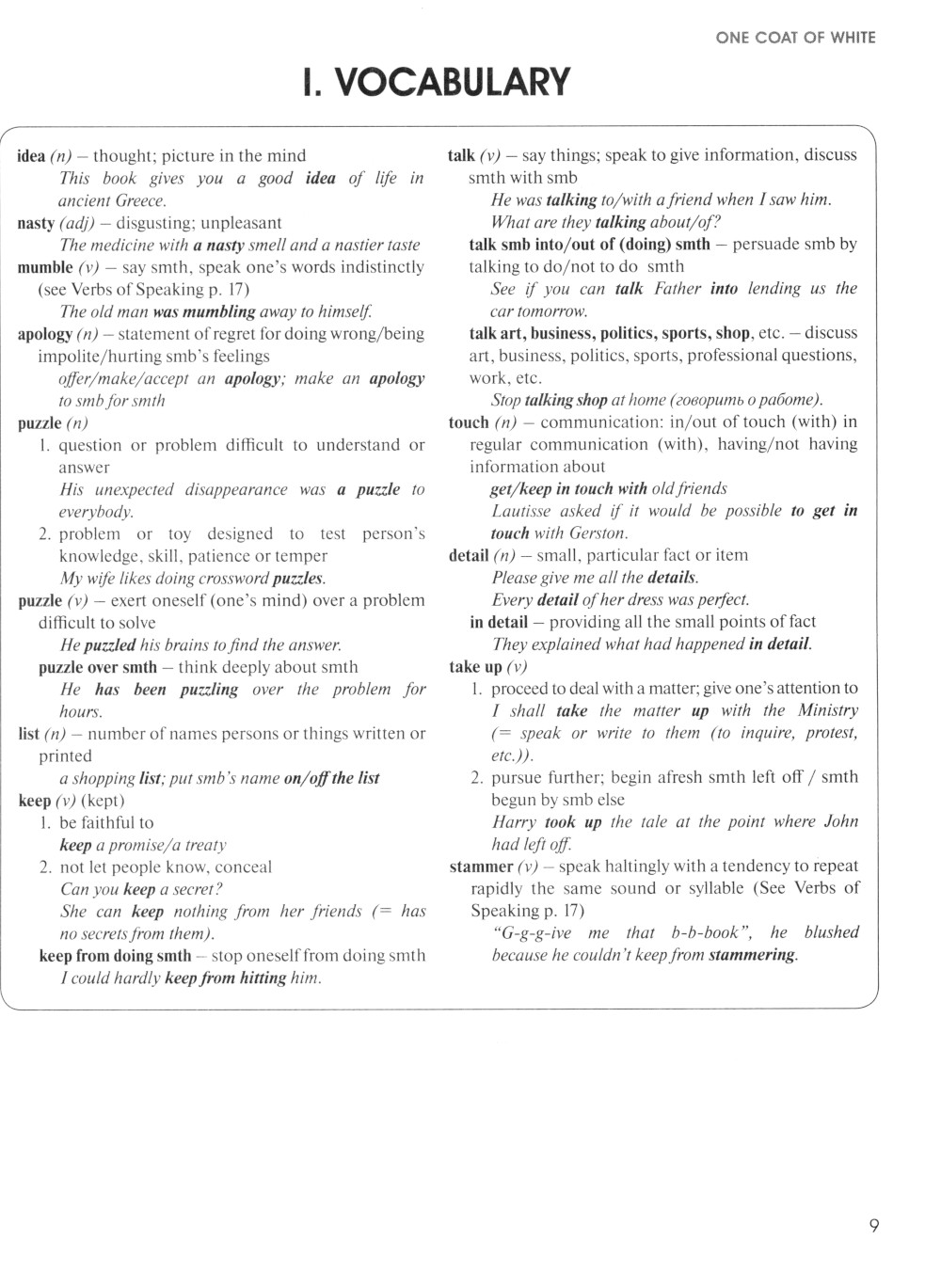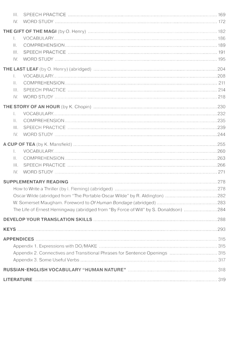 Основная цель пособия - развитие навыков свободного говорения. Эта задача реализуется на материале двенадцати коротких оригинальных рассказов, снабжённых обширными словарями. Изучаемые словарные единицы закрепляются в многочисленных лексических и коммуникативных упражнениях, выполненных в виде рабочей тетради. Справочный материал, сопровождающий упражнения, обеспечивает эффективность и удобство работы. Каждый урок завершается важным шагом в тренировке речи на иностранном языке -свободным переводом короткого рассказа с русского на английский язык. Учебник снабжён материалом для дополнительного чтения и перевода, приложениями, необходимыми для работы со связным текстом, и ответами-ключами, необходимыми для самопроверки и самостоятельной работы.| Издательство | Антология |