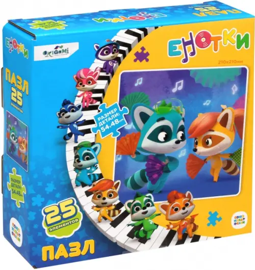 Пазл 25 элементов, основанный на любимых сюжетах мультфильма "Енотки" понравится любому ребенку, а сборка яркой картинки принесет радость не только малышам, но и их родителям. Соберите всю коллекцию новых пазлов!