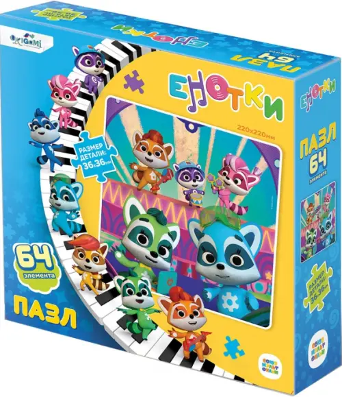 Пазл 64 элемента серии Енотки понравится любому ребенку, а сборка яркой картинки принесет радость не только малышам, но и их родителям.