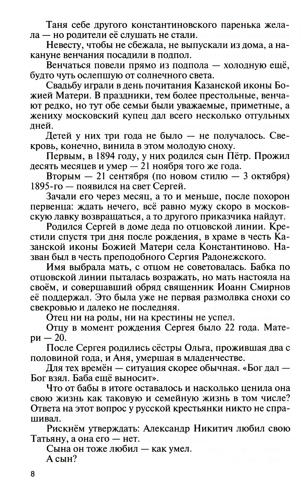 Сергея Есенина любят так, как, наверное, никакого другого поэта в мире. Причём всего сразу - и стихи, и его самого как человека. Но если взглянуть на его жизнь и творчество чуть внимательнее, то сразу возникают жёсткие и непримиримые вопросы. Есенин - советский поэт или антисоветский? Христианский поэт или богоборец? Поэт для приблатнённой публики и томных девушек или новатор, воздействующий на мировую поэзию и поныне? Крестьянский поэт или имажинист? Кого он считал главным соперником в поэзии и почему? С кем по-настоящему дружил? Каковы его отношения с большевистскими вождями? Сколько у него детей и от скольких жён? Кого из своих женщин он по-настоящему любил, наконец? Пил ли он или это придумали завистники? А если пил - то кто его спаивал? За что на него заводили уголовные дела? Хулиган ли он был, как сам о себе писал, или жертва обстоятельств? Чем он занимался те полтора года, пока жил за пределами Советской России? И наконец, самоубийство или убийство? Книга даёт ответы не только на все перечисленные вопросы, но и на множество иных. Захар Прилепин с присущей ему яркостью и самобытностью детально, день за днём, рассказывает о жизни Сергея Есенина, делая неожиданные выводы и заставляя остро сопереживать.