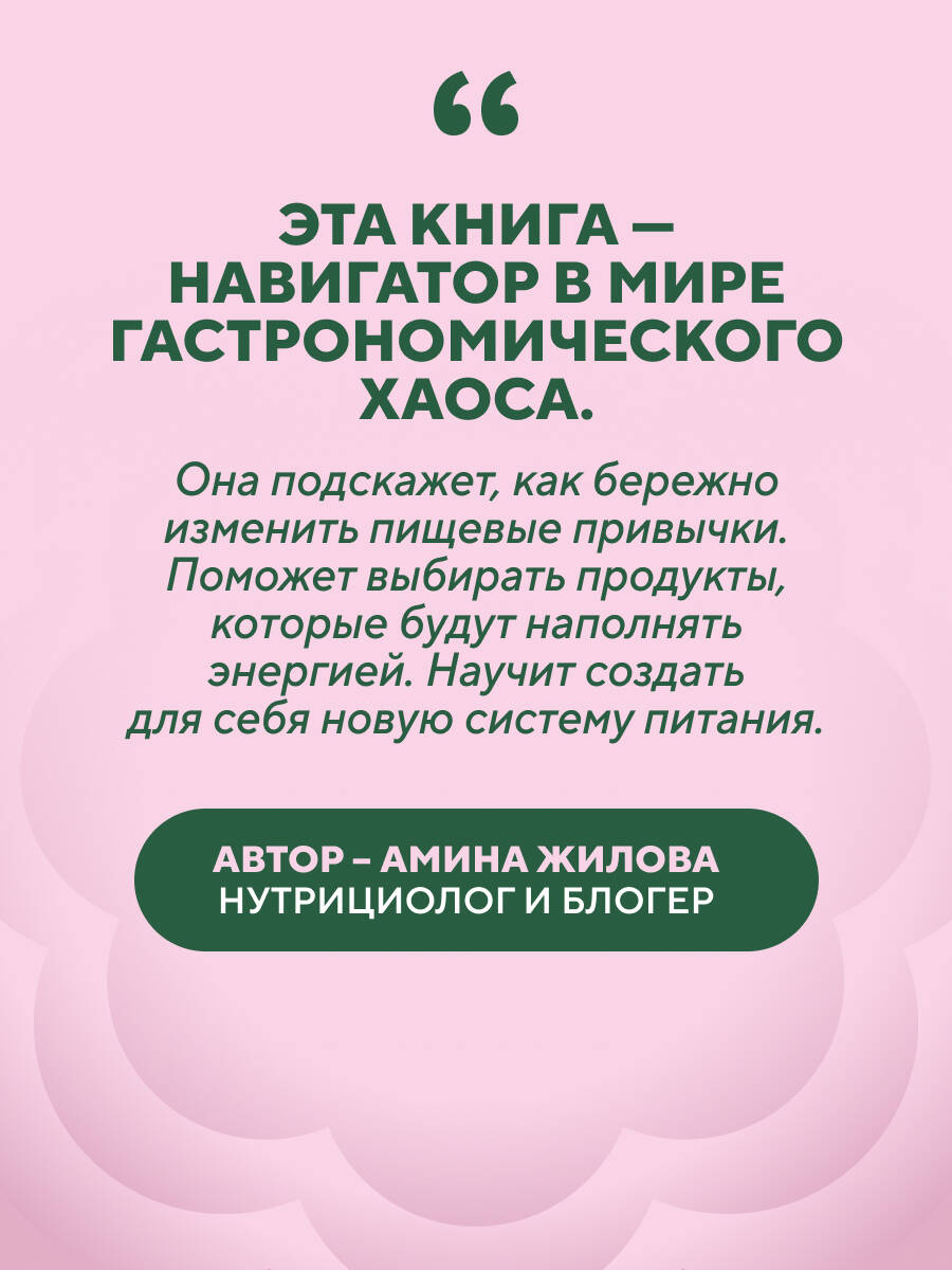 «Моя книга - навигатор в мире гастрономического хаоса». Амина Жилова - дипломированный нутрициолог и автор популярного блога matilda.mama, которая на собственном опыте знает, каково это - проигрывать в битве с лишним весом. Но она нашла решение - разработала собственную систему, благодаря которой похудела на 20 кг за 8 месяцев и без дополнительных усилий остается в новом весе. Теперь Амина помогает перезагрузить отношения с едой другим, а также создает вкусные, простые и полезные рецепты, которые понравятся всей семье. Ее книга - это антидиета, которая поможет прийти к телу мечты и сохранить форму навсегда. Внутри вы найдете: • Подробное описание методики с конкретными шагами. • Практические рекомендации и советы. • Разборы возможных ошибок. • Вдохновляющие истории тех, у кого получилось. • 42 идеальных завтрака, обеда и ужина, чтобы больше не думать: «Что же такого съесть, чтобы похудеть?»| Издательство | ООО "Издательство "Эксмо" |