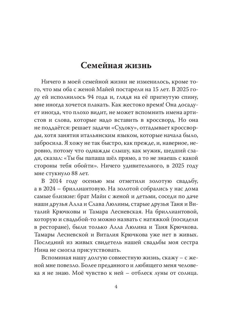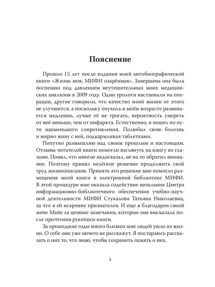 Это продолжение моей автобиографической книги «Жизнь моя, МИФИ озарённая», изданной в 2010 году. Найти ее можно, задав моё имя и фамилию в Яндекс. В предлагаемом читателю продолжении описана моя жизнь в течение последних 15 лет. Рассказано о жизни в семье, о творческих и рутинных делах, о встречах и расставаниях с друзьями, о туристических поездках, о горьком опыте общения с мошенниками и переписке с искусственным интеллектом. Книга для всех, кому интересна жизнь других людей.| Издательство | Рипол Классик |