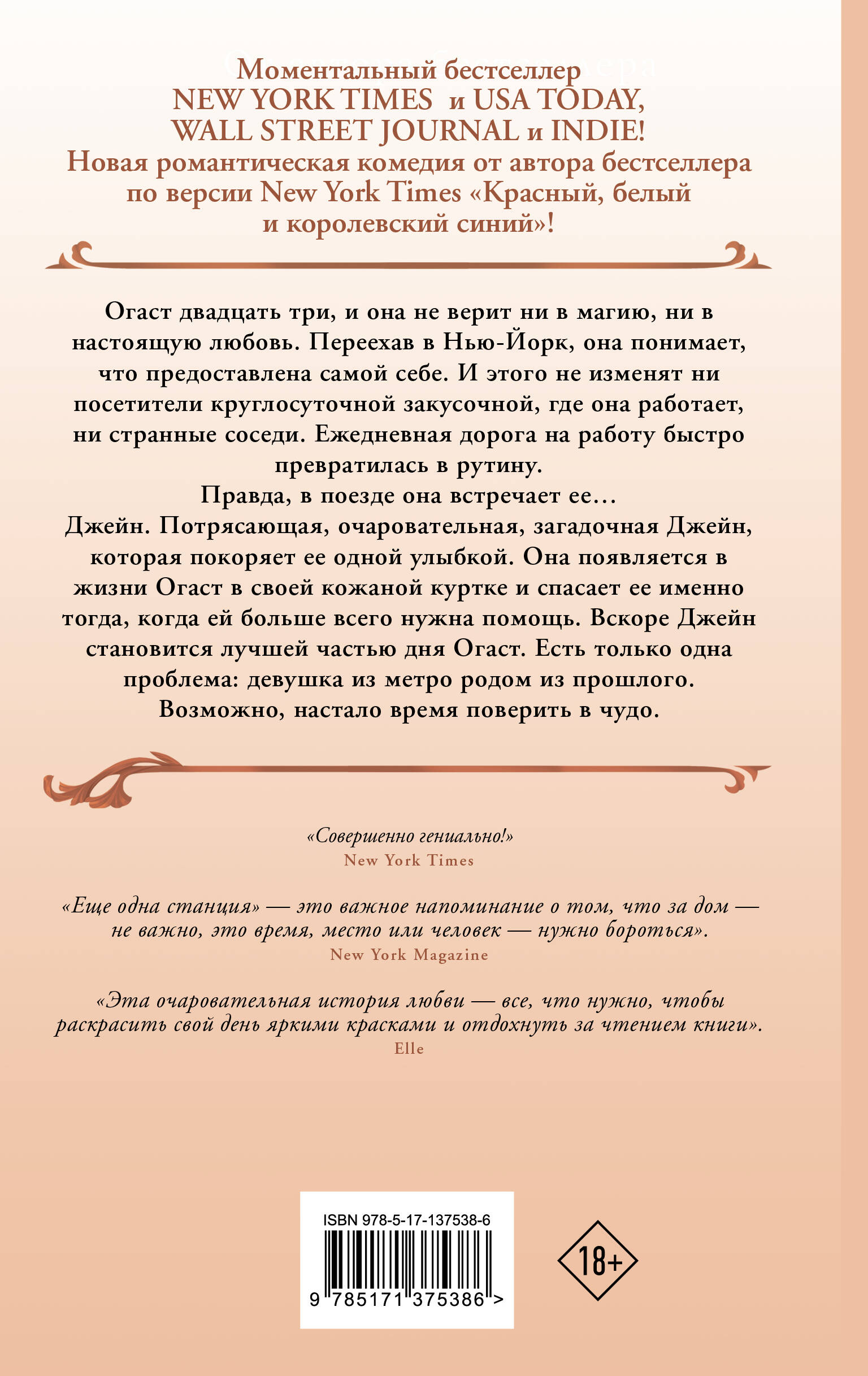 Джейн. Потрясающая, очаровательная, загадочная Джейн, которая покоряет ее одной улыбкой. Она появляется в жизни Огаст в своей кожаной куртке и спасает ее именно тогда, когда ей больше всего нужна помощь. Вскоре Джейн становится лучшей частью дня Огаст. Есть только одна проблема: девушка из метро родом из прошлого.