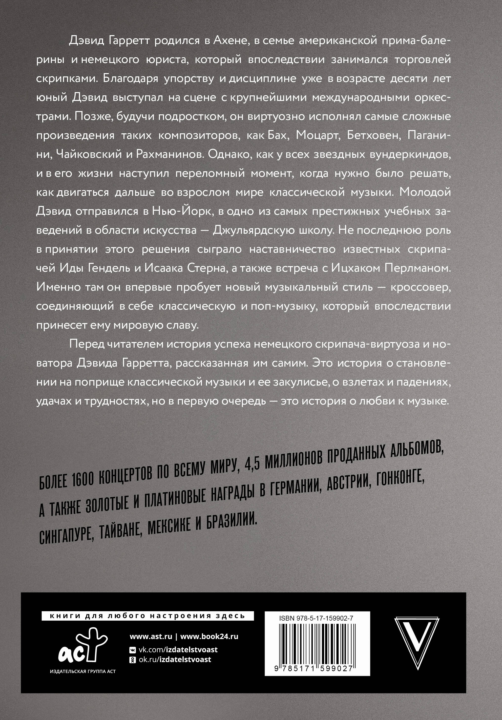 Дэвид Гарретт родился в Ахене, в семье американской прима-балерины и немецкого юриста, который впоследствии занимался торговлей скрипками. Благодаря упорству и дисциплине уже в возрасте десяти лет юный Дэвид выступал на сцене с крупнейшими международными оркестрами. Позже, будучи подростком, он виртуозно исполнял самые сложные произведения таких композиторов, как Бах, Моцарт, Бетховен, Паганини, Чайковский и Рахманинов. Однако, как у всех звездных вундеркиндов, и в его жизни наступил переломный момент, когда нужно было решать, как двигаться дальше во взрослом мире классической музыки. Молодой Дэвид отправился в Нью-Йорк, в одно из самых престижных учебных заведений в области искусства - Джульярдскую школу. Не последнюю роль в принятии этого решения сыграло наставничество известных скрипачей Иды Гендель и Исаака Стерна, а также встреча с Ицхаком Перлманом. Именно там он впервые пробует новый музыкальный стиль - кроссовер, соединяющий в себе классическую и поп-музыку, который впоследствии принесет ему мировую славу. Перед читателем история успеха немецкого скрипача-виртуоза и новатора Дэвида Гарретта, рассказанная им самим. Это история о становлении на поприще классической музыки и ее закулисье, о взлетах и падениях, удачах и трудностях, но в первую очередь - это история о любви к музыке.| Издательство | Издательство "АСТ" |