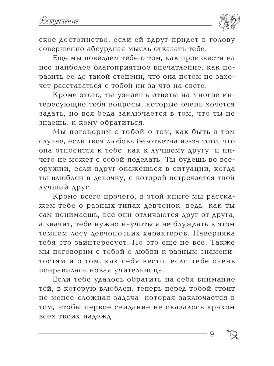 Книга поможет читателю в решении очень многих проблем, связанных с трудным периодом переходного возраста. Влюбленость, налаживание контакта с понравившейся девочкой, умение правильно подать себя - все это является предметом очень конкретного и серьезного разговора, который как раз и является содержанием данной книги.