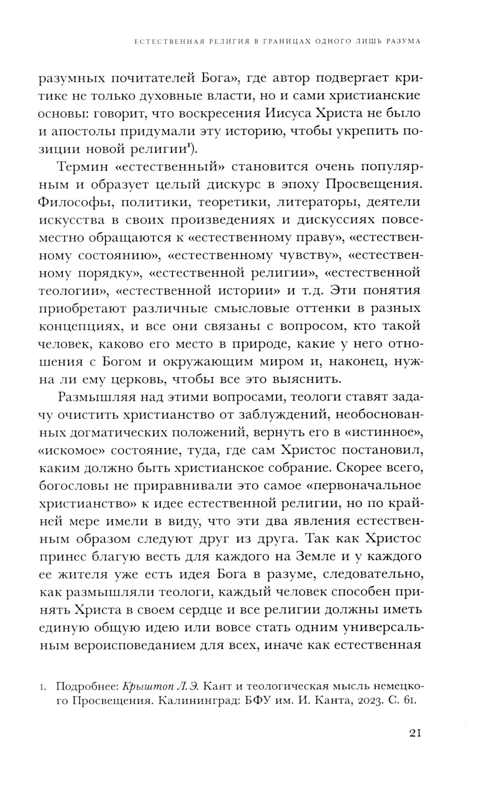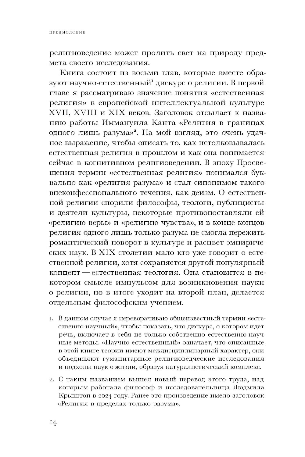 Почему даже в эпоху чатботов, умных пылесосов и разговаривающих колонок религия продолжает существовать и оказывать влияние на людей, общества и государства? Книга А. Зубковской рассказывает о натуралистических теориях религии, возникших в начале XXI века. Задача этих теорий - объяснить, откуда происходит религиозность, как она трансформируется в культуре, адаптируется к новым технологиям и почему не уходит в прошлое. Культура и религия исследуются в книге как продукты эволюции человеческой психики, которые продолжают воспроизводиться и выполнять важные функции в развитии homo sapiens. Рассматривая историю естественной религии через призму современного эволюционизма, автор показывает, что человеческий разум, поведение и культура составляют наряду с биологией часть единой живой природы. Анастасия Зубковская - кандидат философских наук, научный сотрудник Института научной информации по общественным наукам (ИНИОН) РАН.| Издательство | Новое литературное обозрение |