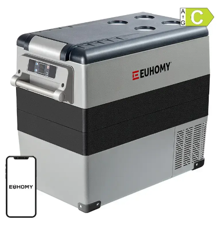 Вместительный 55 л компрессорный холодильник/морозильник, охлаждает до -20 °C, идеально для долгих поездок и активного отдыха.