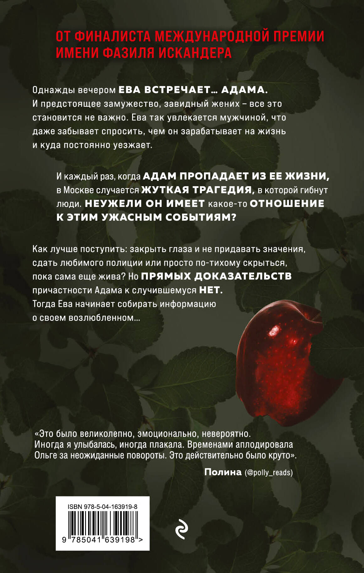 От финалиста Международной премии имени Фазиля Искандера. Однажды вечером Ева встречает… Адама. И предстоящее замужество, завидный жених - все это становится не важно. Ева так увлекается мужчиной, что даже забывает спросить, чем он зарабатывает на жизнь и куда постоянно уезжает. И каждый раз, когда Адам пропадает из ее жизни, в Москве случается жуткая трагедия, в которой гибнут люди. Неужели он имеет какое-то отношение к этим ужасным событиям? Как лучше поступить: закрыть глаза и не придавать значения, сдать любимого полиции или просто по-тихому скрыться, пока сама еще жива? Но прямых доказательств причастности Адама к случившемуся нет. Тогда Ева начинает собирать информацию о своем возлюбленном… ------------------------------ «Я читала, затаив дыхание, не отрываясь, главу за главой, пока не перевернула последнюю страницу Эпилога ♥». - Дайана (@books_hair) «Книга оставила после себя очень яркие эмоции. Конец истории заставил меня грустно улыбнуться - такая красивая, но трагичная любовь». - Елена (@hellolenamalinaa) «Это было великолепно, эмоционально, невероятно. Иногда я улыбалась, иногда плакала, а пару раз я откладывала книгу и впадала в ступор от прочитанного. Временами аплодировала Ольге за неожиданные повороты. Это действительно было круто». - Полина (@polly_reads) «Еще один захватывающий роман от Ольги Гуляевой, который я прочитала на одном дыхании. Финал мне просто разбил сердце». - Катерина (@ktrn.books)| Издательство | Эксмо |