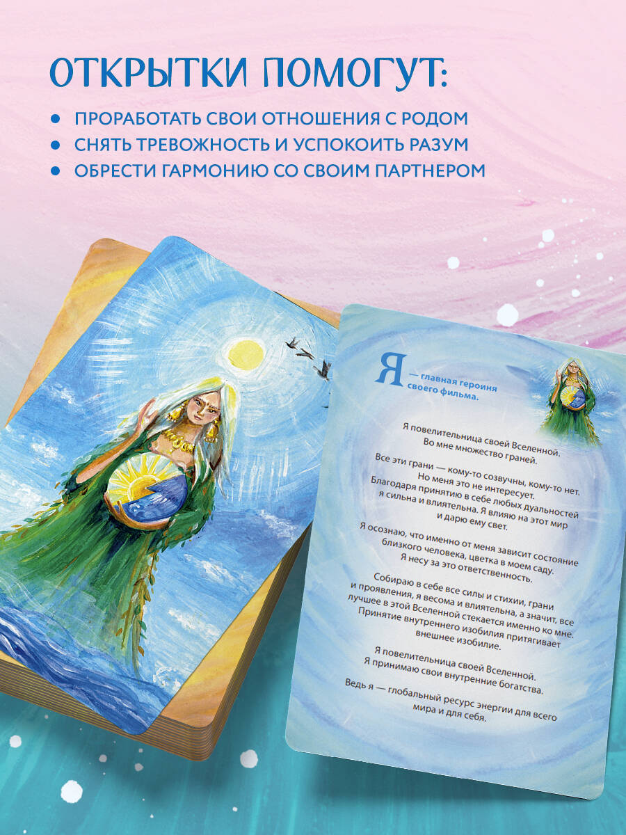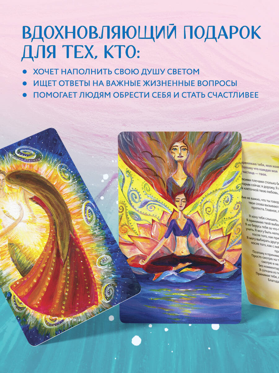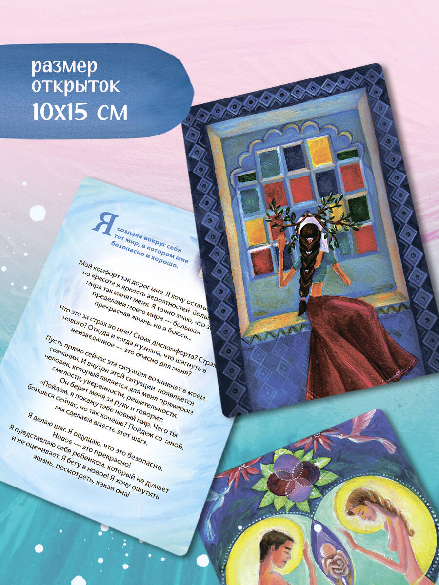20 метафорических открыток с наполняющими медитациями - помогут найти выход из трудной жизненной ситуации. Вы сможете: - проработать свои отношения с родом; - понять и простить родителей; - снять тревожность и успокоить разум; - выстроить гармоничные отношения с партнером; - научиться доверять себе и другим. Вдохновляющий подарок и пособие для психологов, тарологов и других людей помогающих профессий. Метафорические открытки прекрасно дополняют работу с трансформационными картами. Главное правило работы с ними - осознанность и открытость. Автор колоды - психолог Екатерина Каменская. Иллюстрации для карт, наполненные синевой неба, жарким южным солнцем эдемского сада и светом первозданной женской силы - подготовила художница Эльвира Павлова.