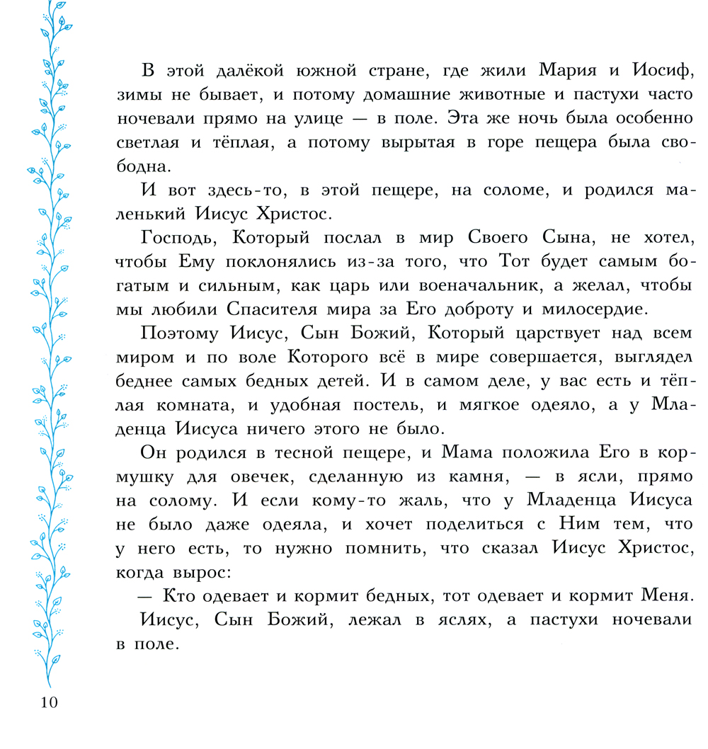 «Евангельские истории» - чудесный подарок на любой христианский праздник. Двадцать пять историй просто, тепло и проникновенно повествуют о Деве Марии, о рождении Младенца Иисуса, о жизни, распятии и воскресении Спасителя. В книге собраны самые важные притчи и наставления Иисуса Христа. Все они написаны так, словно тихо беседуют с маленьким читателем, рассказывают ему добрую и мудрую историю о самом сокровенном и важном.| Издательство | Глагол |