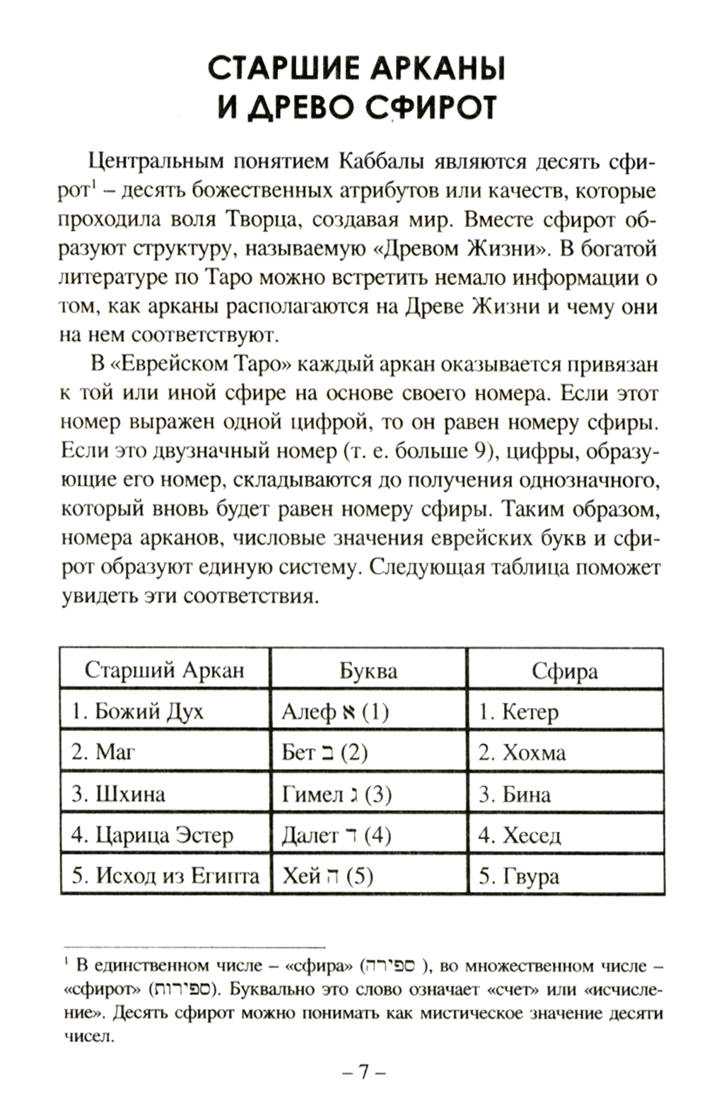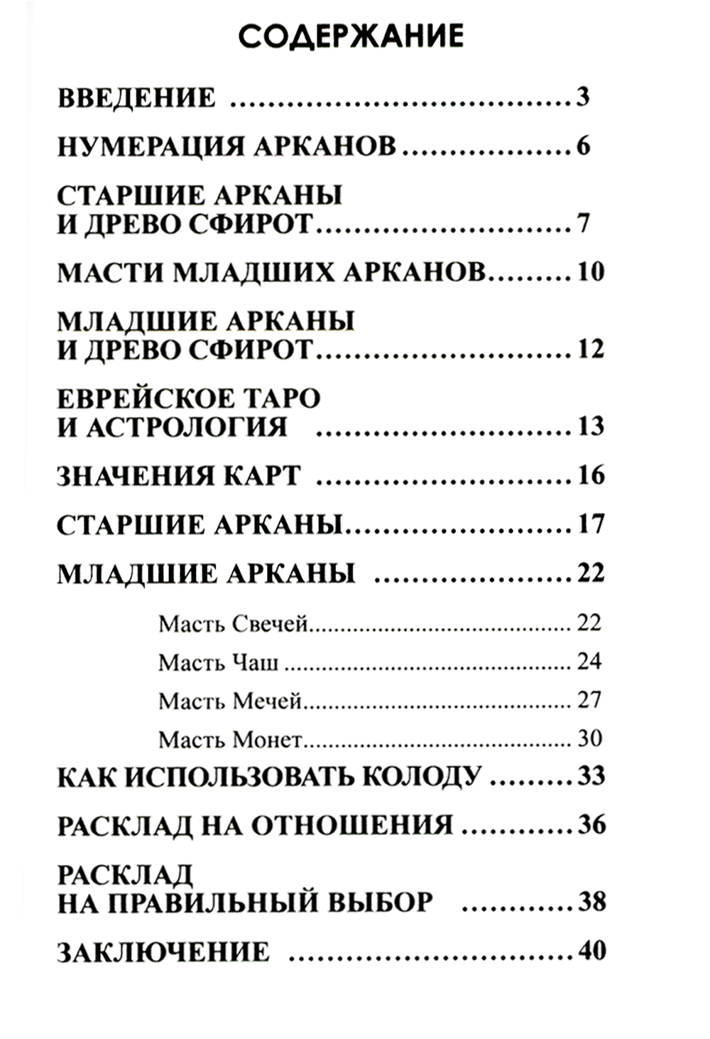 Еврейское Таро является уникальной колодой, сочетающей в себе классическую систему Таро и традиций иудаизма. В этой колоде арканы возвращаются к своим древним корням и облекаются в сюжеты и образы из Танаха (Ветхого Завета Библии), Талмуда и Каббалы. Еврейское Таро является многоплановой системой, требующей глубокого изучения, поскольку построено на точных соответствиях между арканами, буквами иврита, древом сфирот, планетами и знаками Зодиака в астрологии и календарными периодами. Тем не менее, начинающие быстро увидят простоту и эффективность этого предсказательного инструмента, так как в раскладах карты легко прочитываются интуитивно. С этой колодой могут начинать работать новички, но чем глубже они будут проникать в ее секреты, тем более неожиданно точные результаты будут получать. Еврейское Таро может помочь изучающим лучше разобраться в Каббале, познакомиться с древними религиозными традициями, связать воедино разрозненные эзотерические знания. В консультативной практике эта колода хорошо помогает прояснить вопросы бизнеса и новых проектов, личных отношений, а также духовных, философских и творческих поисков.