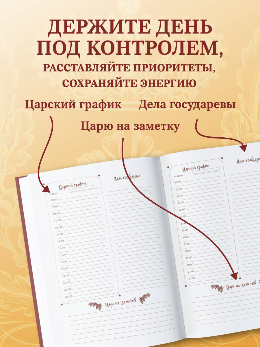 Настоящий государь не суетится - он правит. «Ежедневник царя» создан для тех, кто предпочитает управлять временем с размахом и стилем. Продуманная структура и вдохновляющее оформление помогут вам держать день под контролем, распределять силы с мудростью и не забывать, кто здесь главный. Планируйте, как правитель: уверенно, с достоинством и по своим правилам.| Издательство | ООО "Издательство "Эксмо" |