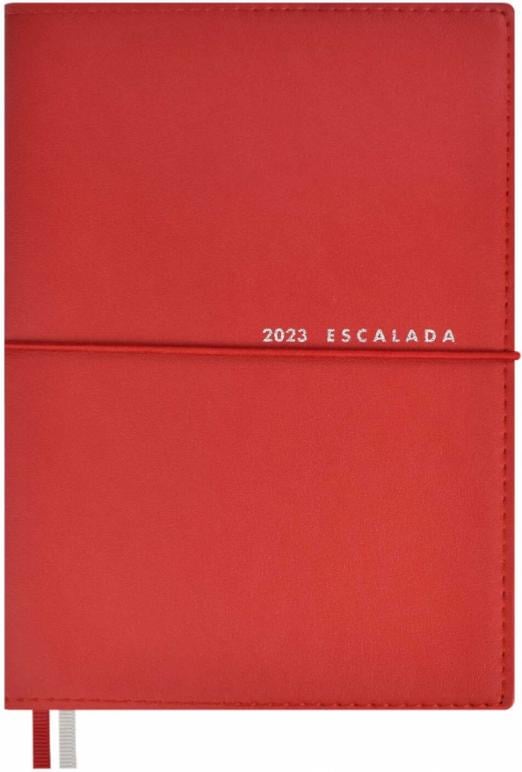 Ежедневник датированный 2023 ESCALADA, А6+, 128 л., кожзам: 128х182 мм, мягкий переплёт, материал обложки: искусственная кожа "Наппола"; декор: тиснение фольгой; способ крепления блока: вставной блок, ниткошвейный; вн. блок: 128 л., кремовый офсет 70 г/м?, печать в две краски (линия), справочный материал: есть; перфорация углов блока: нет; закладка/-и: два ляссе; каптал: нет; форзац: печать пантоном; особенности: закладка пластиковая, украшенная тиснением фольгой, в комплекте, запаянный край, застёжка-резинка, съёмная обложка; персонализация возможна: да; индивидуальная упаковка: промостикер + ПЭТ-пакет