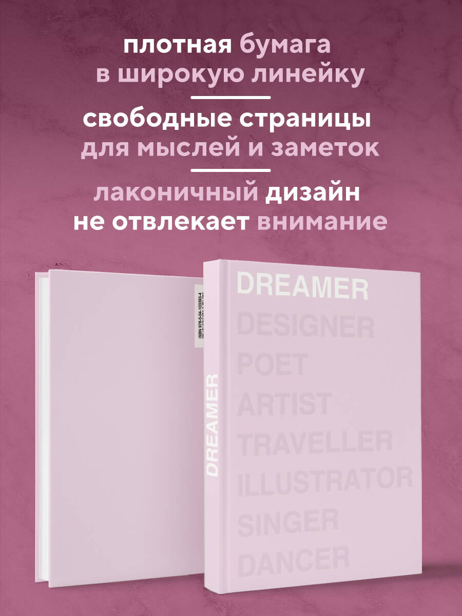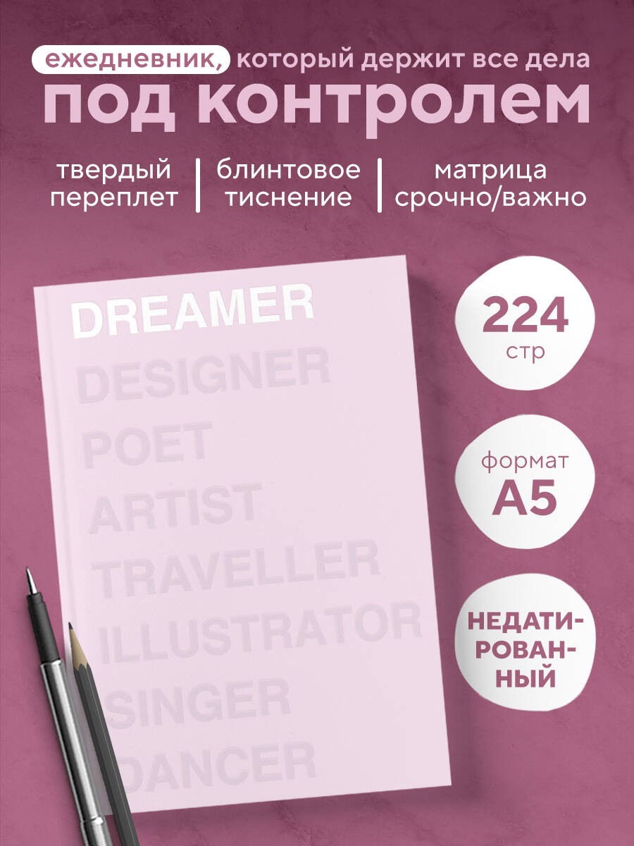 Аннотация: Ежедневник Dreamer (розовый). А5, твердый переплет, блинтовое тиснение, полусупер, 224 стр.