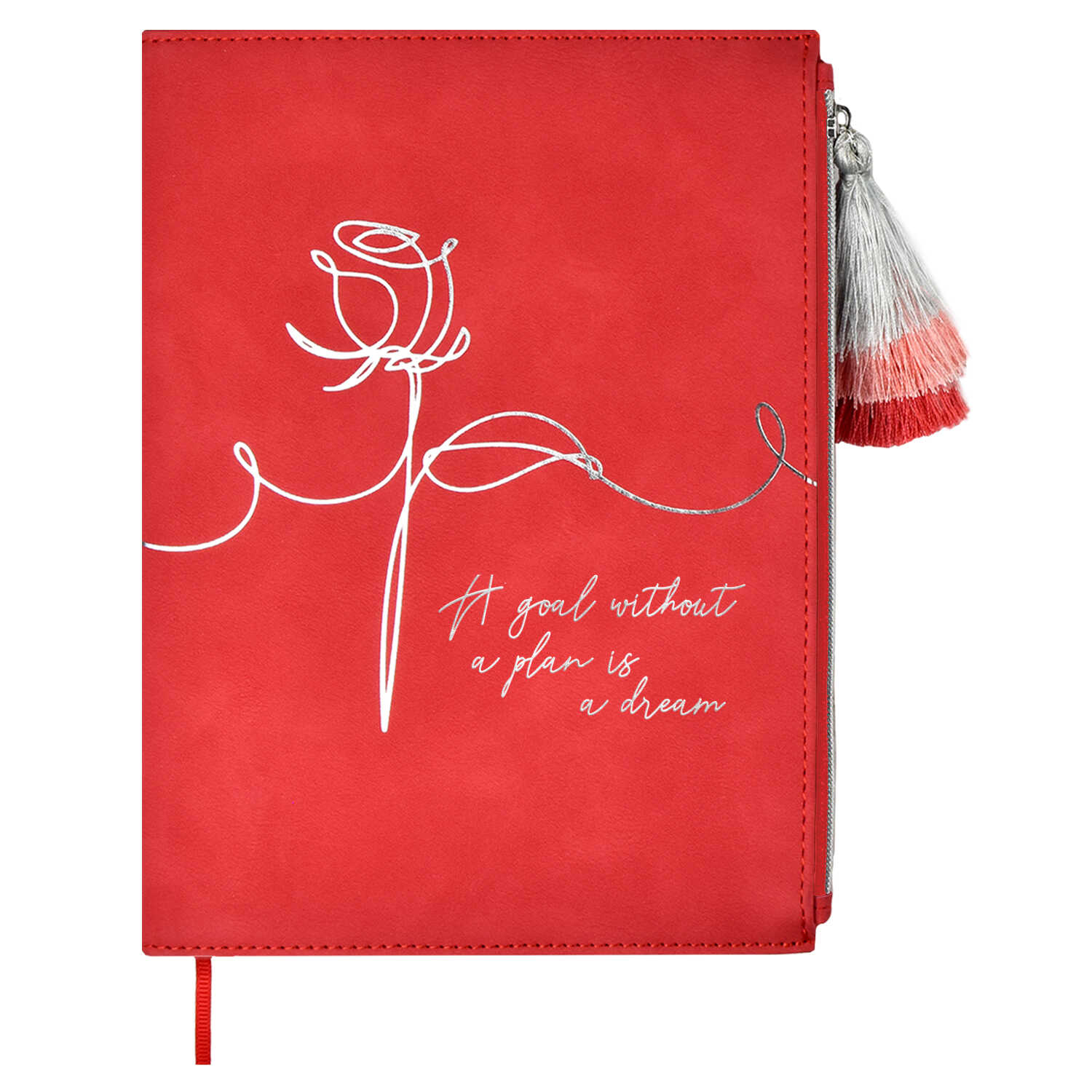 Особенности: функциональный карман на молнии как часть обложки, "собачка" - кисточка из атласных нитей.