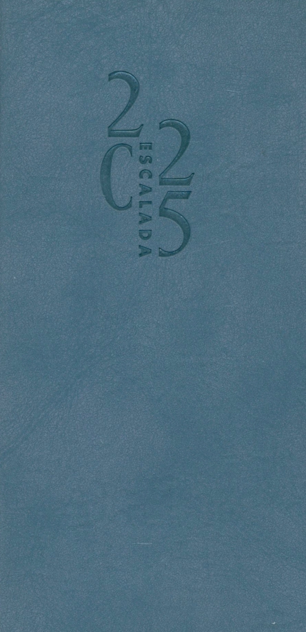 Еженедельник датированный 2025 ESCALADA (80х165 мм), 64 л. Обложка: мягкий переплёт, блинтовое тиснение, обстрочка по периметру - нет, скруглённый корешок, прямые углы обложки. Внутренний блок: ниткошвейный, белый офсет 70 г/м2, печать в одну краску (линия), прямые углы блока, перфорация углов блока - нет, справочный материал - есть. Красочность форзаца: печать пантоном. Отделка среза: окрашивание пантоном. Закладка: нет. Каптал: нет. Индивидуальная упаковка: ПЭТ-пакет.