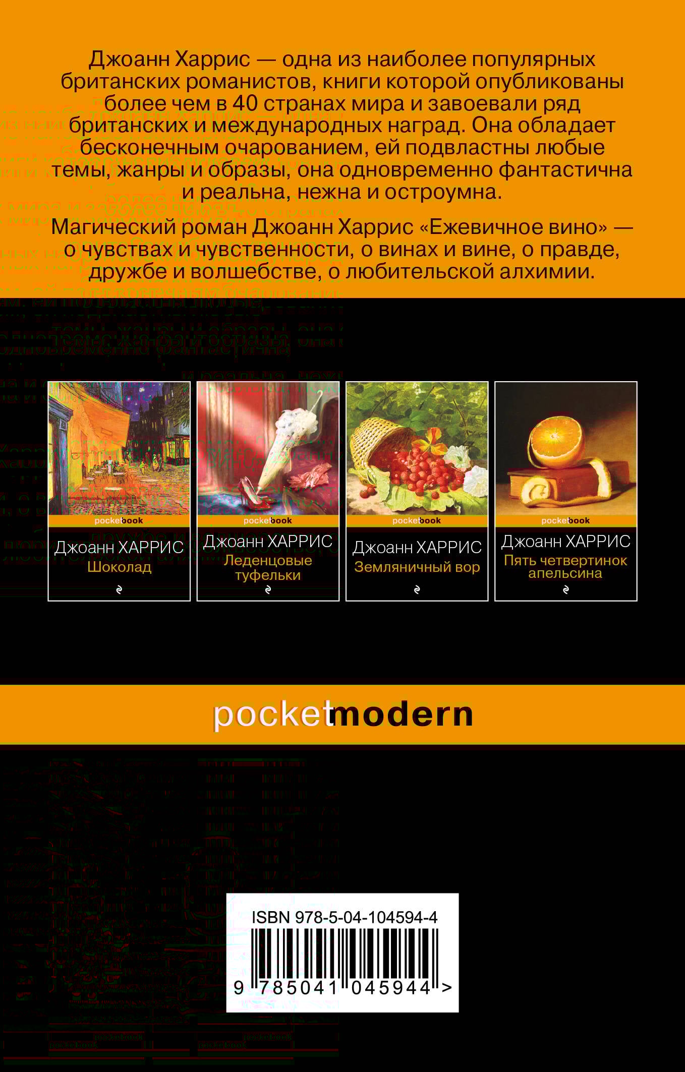 Вино может творить чудеса. Джей Макинтош, писатель, который не пишет, находит шесть бутылок домашнего вина, чудом сохранившихся со времен его детства, о котором он вспоминает с острой ностальгией, наслаждением и горечью. Чудаковатый старик-садовод, когда-то сильно повлиявший на судьбу Джея, а потом исчезнувший без следа, создал вино, которое может перевернуть целую жизнь... Магический роман Джоанн Харрис «Ежевичное вино» - о чувствах и чувственности, о винах и вине, о правде, дружбе и волшебстве, о любительской алхимии. Роман «Ежевичное вино» похож на глоток легкого домашнего вина в летний вечер. Когда солнце садится за горизонт и цветы начинают пахнуть в два раза сильнее. Книга волшебная, с сумасшедшими запахами, звуками, красками. Вино в романе оживает и творит чудеса, помогает человеку найти путь к себе настоящему. Казалось бы, в легком романе, а подняты вечные вопросы. Чудеса сбываются, если верить.| Издательство | ООО "Издательство "Эксмо" |