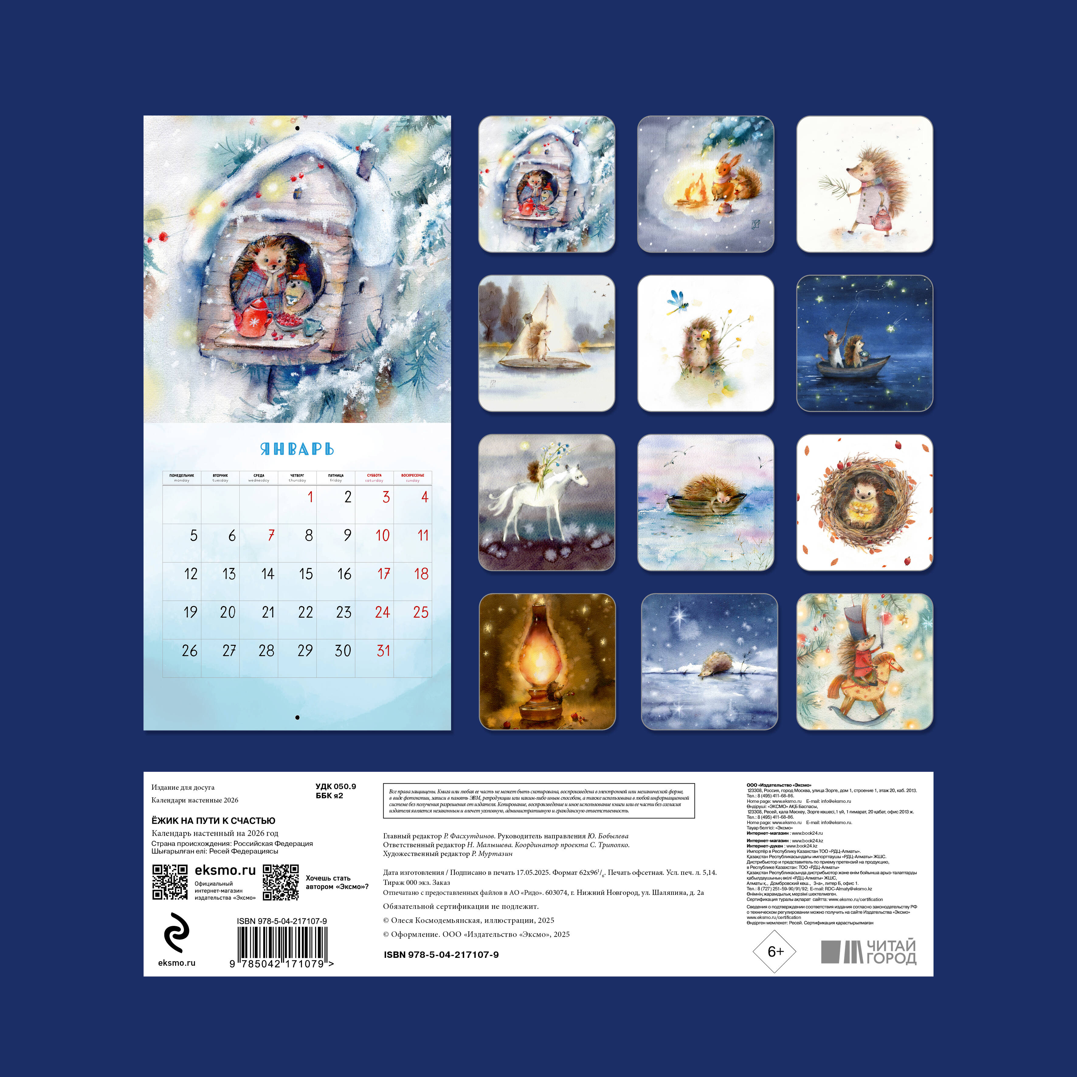 Аннотация: Ежик на пути к счастью. Календарь настенный на 2026 год (300х300 мм)