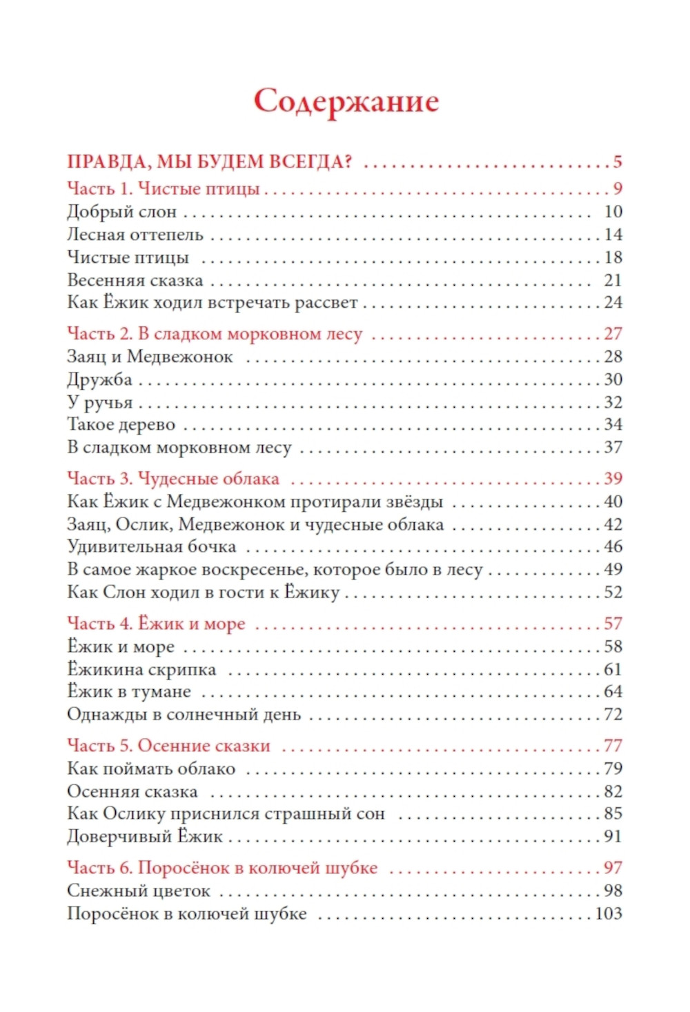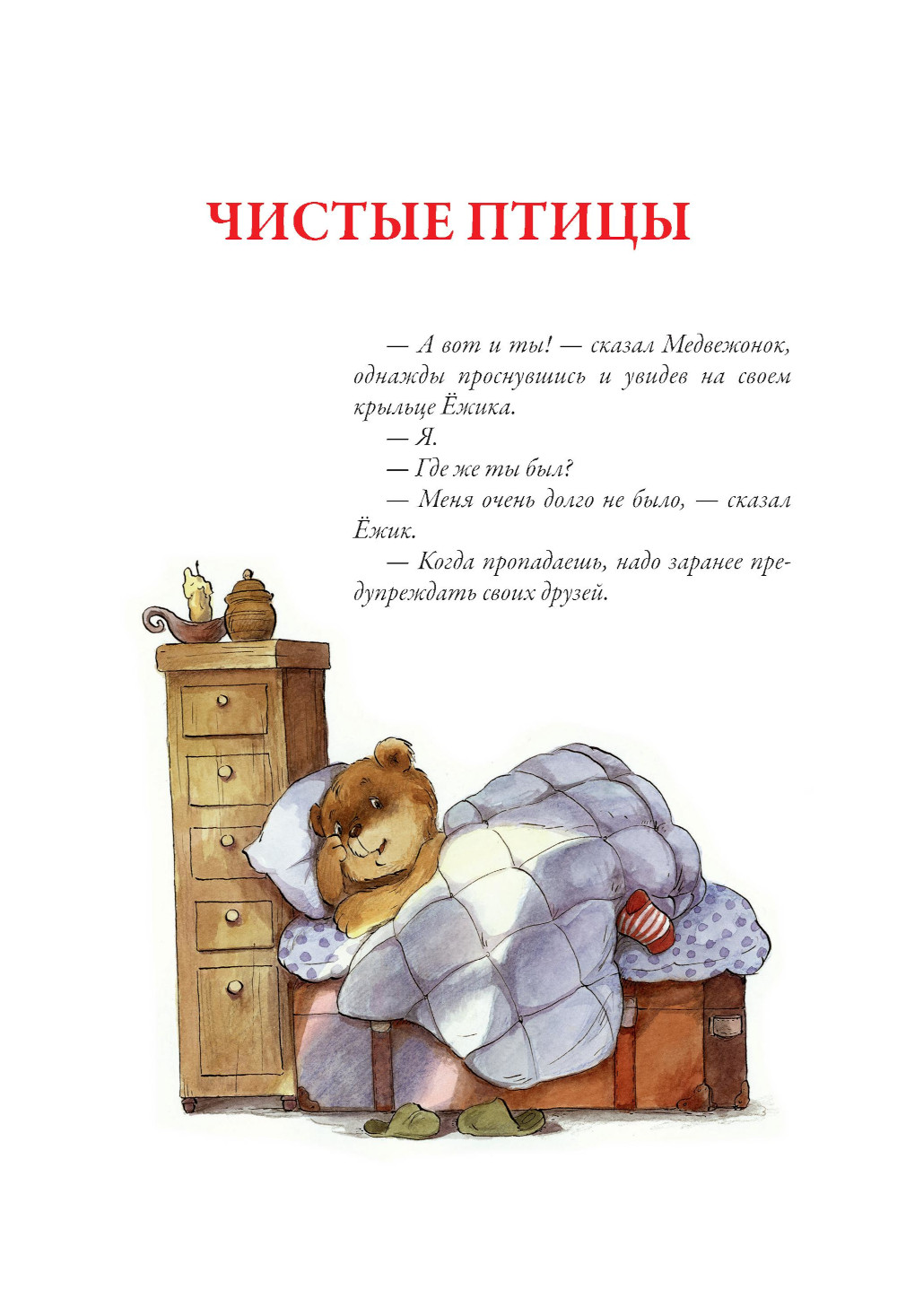 Знаменитый режиссер Юрий Борисович Норштейн не снял бы свой прославленный мультфильм «Ежик в тумане», если 6ы не опирался на текст Сергея Григорьевича Козлова (1939-2010) - автора широко известной и всеми любимой одноименной сказки. Сказочная проза Сергея Григорьевича уникальна; его произведения переведены на языки разных народов мира, хотя многие наши соотечественники знакомы с его героями именно по мультфильмам. Кто не видел историю про Черепаху, которая пела Львенку песенку «Я на солнышке лежу...»? А ведь это тоже герои сказок Сергея Козлова. Мультипликаторы давно обратили внимание на его творчество: его персонажи и простые, казалось бы, сюжеты так и просятся на экран. Будущий писатель родился летом 1939 года в Москве и начал писать стихи еще в школе. Затем была учеба в Литературном институте, а сказки Козлов начал сочинять, достигнув тридцати лет. До этого начинающий литератор успел поработать токарем, учителем пения, кочегаром и экскурсоводом. Сергей Григорьевич умел разговаривать с детьми, объяснять им простыми словами самые разные вещи. К примеру, в 1976 году в издательстве «Детская литература» вышла его книга о реке: это был рассказ о ее течении, берегах, пароходах, бакенах, мостах и шлюзах. И все же главный талант Козлова состоял в том, что он был способен говорить в своих сказках с детьми и взрослыми о самом главном в жизни - о дружбе, счастье, любви, преданности. Очаровательные сказки Козлова в этой книге гармонично дополняют иллюстрации талантливой современной художницы Анаит Гардян. Она появилась на свет в декабре 1967 года в Ереване и в 1992 году окончила Армянский педагогический институт. Однако тяга к сказочному миру, очаровавшему Анаит еще в детстве, привела ее в группу мультипликаторов киностудии «Арменфильм». Набравшись опыта у друзей, создававших мультфильмы, Анаит решила попробовать заняться книжными иллюстрациями. И это у нее получилось! Все сказочные персонажи на ее рисунках получаются такими живыми, эмоциональными, непосредственными и веселыми, что безоговорочно хочется поверить в реальность их существования. Гардян стала признанным мастером книжной иллюстрации. С 2000 года она живет в Москве, сотрудничая с рядом книжных издательств. Полистав книгу, читатель с первого взгляда убедится, что красочные и добрые иллюстрации Анаит Гардян составляют единое целое с текстами Сергея Козлова| Издательство | СЗКЭО |