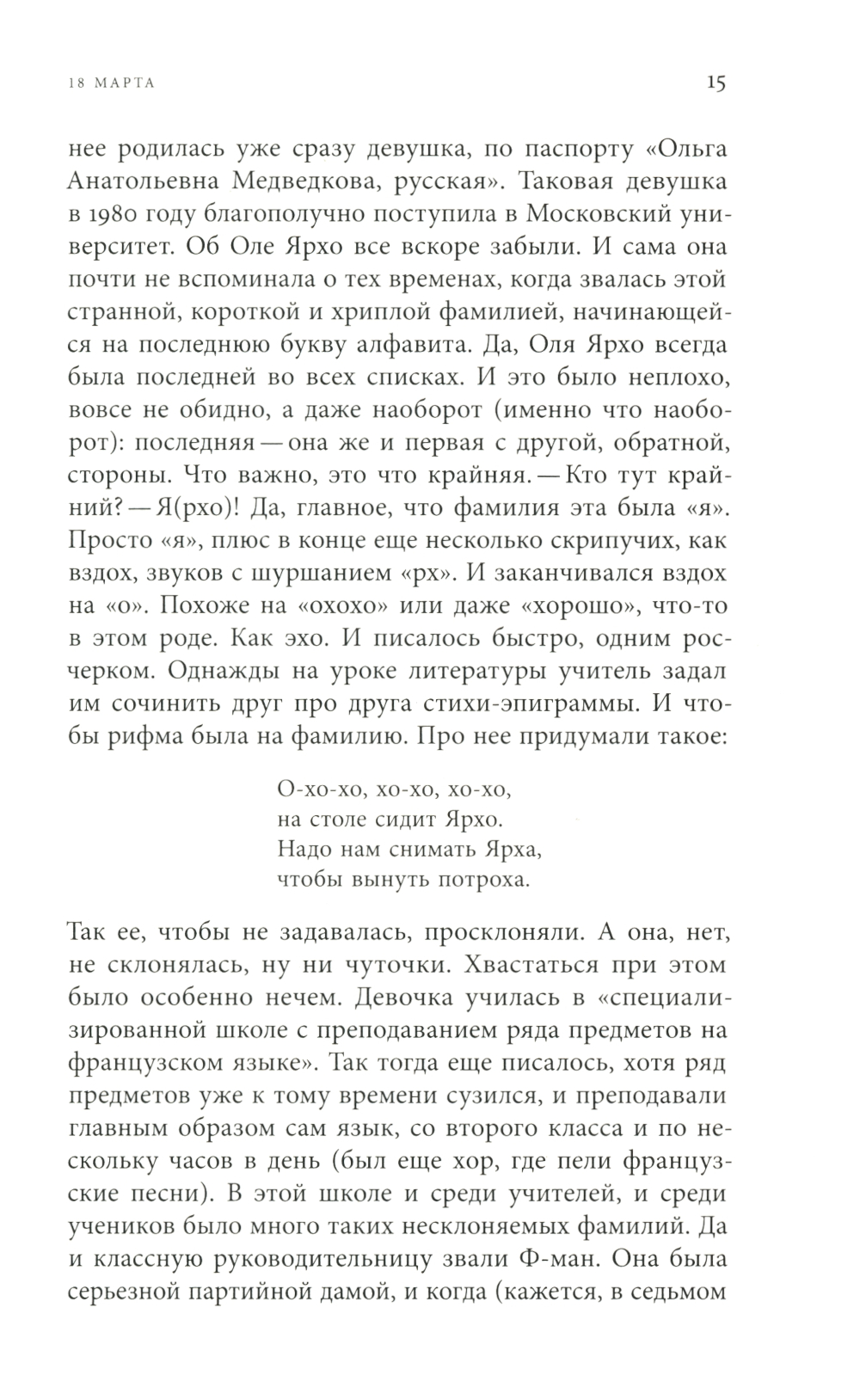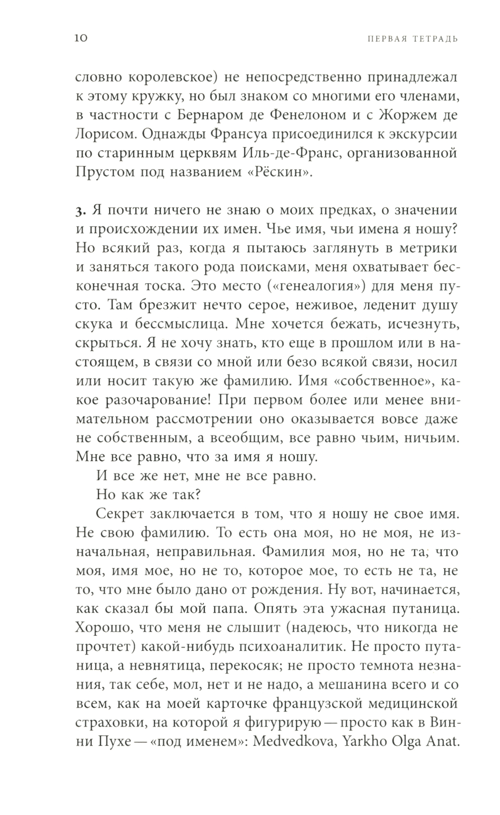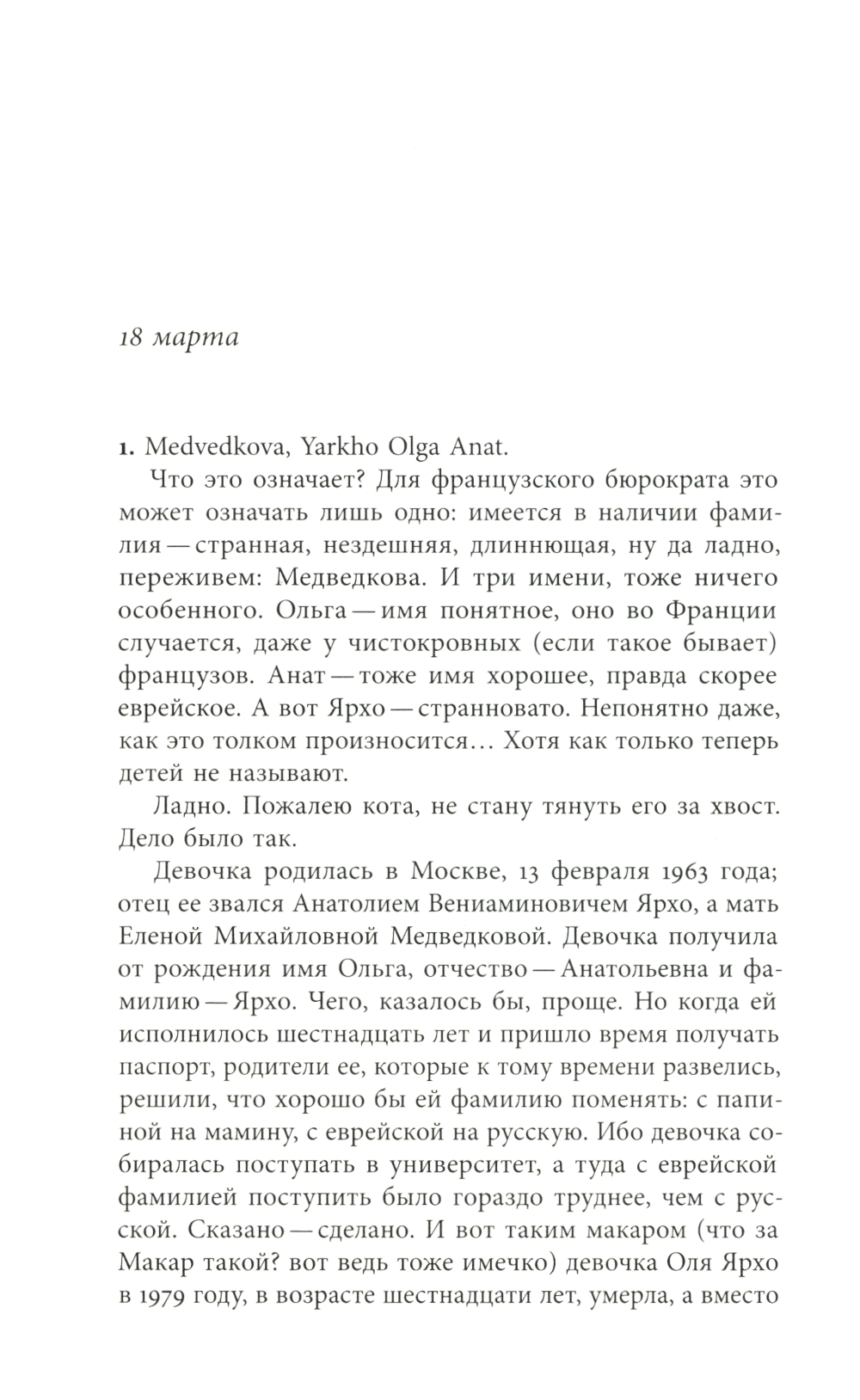 Ф.И.О. - фамилия, имя, отчество - как в анкете. Что это? Что есть имя? Владеем ли мы им? Постоянно или временно? Присваиваем ли себе чужое? Имя - росчерк пера, маска, ловушка, двойник, парадокс - плохо поддается пониманию. «Что в имени тебе моем?» А может, посмотреть на него с точки зрения истории? Личной истории, ведь имя же - собственное. Имя автора этой книги - как раз и есть такая история, трагическая и смешная. Чтобы в ней разобраться, пришлось позвать на помощь философов и поэтов, писателей и теологов, художников и историков. Пришлось вызвать из небытия тени бабушек и дедушек. И назвать их по имени. Книга написана в форме дневника, ведущегося в парижской квартире во время карантина, в трех тетрадях, соответствующих трем именам автора: Оля Ярхо - в детстве, Ольга Анатольевна Медведкова - в паспорте и Medvedkova, Jarho Olga Anat - во французской карточке медицинского страхования. Читателей дневника автор приглашает подумать, разобраться, поиграть в имена. Ольга Медведкова - прозаик, историк искусства и архитектуры, старший научный сотрудник Национального центра научных исследований Франции, автор романа «Три персонажа в поисках любви и бессмертия» (НЛО, 2020).| Издательство | Новое литературное обозрение |