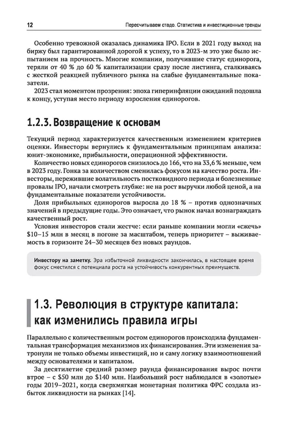 Книга меняет взгляд на феномен компаний-единорогов, раскрывая скрытые закономерности их появления, роста и выхода на публичный рынок. Перед вами предстанет целостная система практических фреймворков и чек-листов, которые помогут проводить глубокий анализ, оценивать инвестиционные риски и выстраивать стратегию роста компаний-единорогов. На основе авторских методик вы получите набор инструментов и подходов, позволяющих: - выявлять потенциальных единорогов на ранней стадии развития; - оценивать качество роста и формировать инвестиционный портфель с учетом макроциклов; - проектировать оптимальные стратегии выхода. Уникальная классификация компаний-единорогов по бизнес-моделям и отраслям, дополненная прогнозами развития, превращает издание в практическое руководство, которое дает конкурентное преимущество как основателям, стремящимся вырастить компанию-единорога, так и частным инвесторам и профессионалам венчурного рынка, выбирающим наиболее перспективные объекты для инвестиций.| Издательство | ДМК |