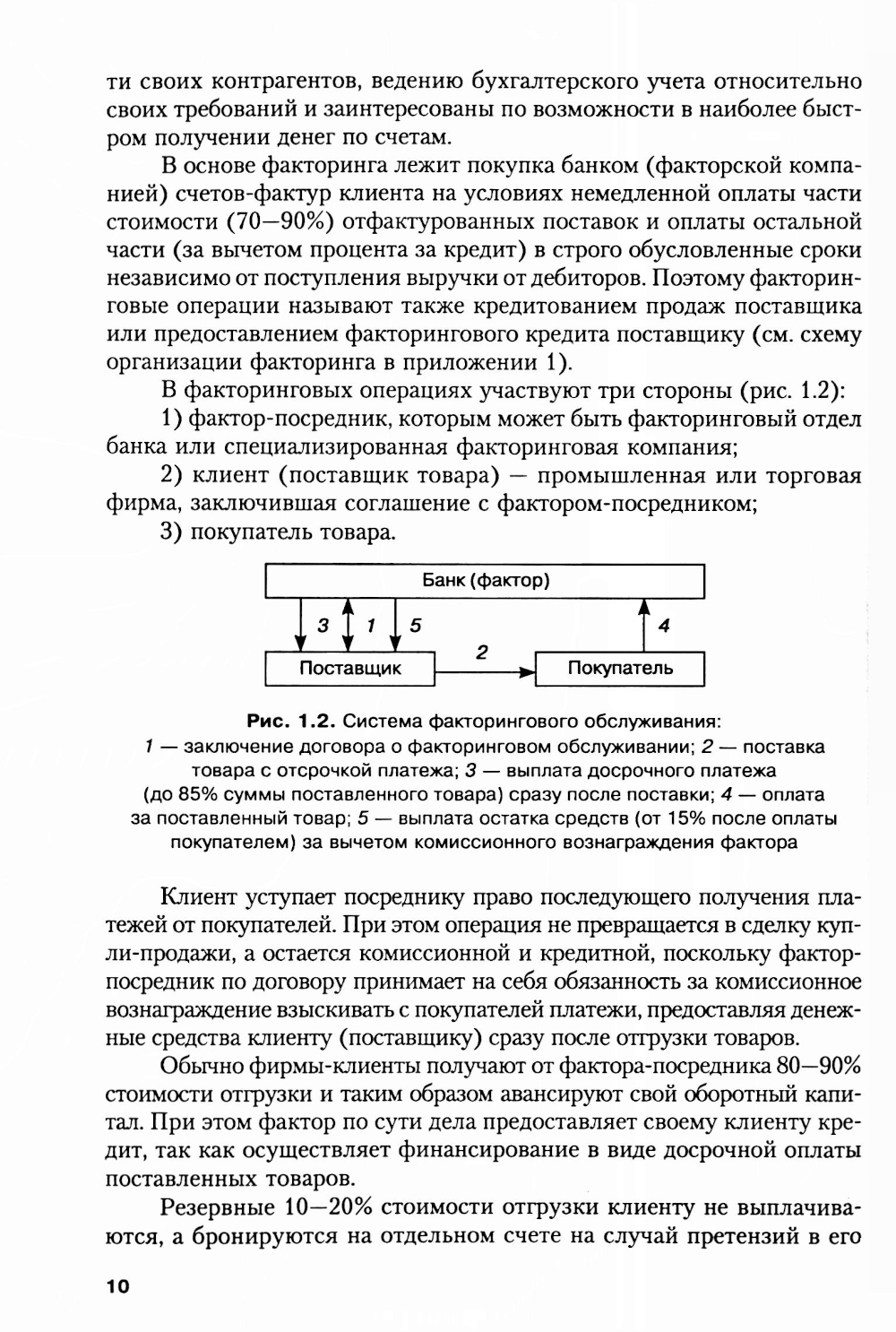 Учебное пособие знакомит читателя с популярной, но малоизвестной в России формой банковских операций и методом финансирования оборотных средств в предпринимательской деятельности - факторингом. В пособии проведен подробный анализ современного состояния рынка факторинговых услуг в нашей стране, тенденций и перспектив его развития с учетом особенностей современной экономической обстановки. Представленный схематический материал, расчеты, образцы документов позволяют понять механизм действия факторинга и основные принципы его использования. Для студентов, магистрантов, аспирантов и преподавателей экономических вузов, финансовых директоров и менеджеров предприятий, банковских служащих, специалистов и консультантов по управлению финансами и дебиторской задолженностью.| Издательство | КноРус |