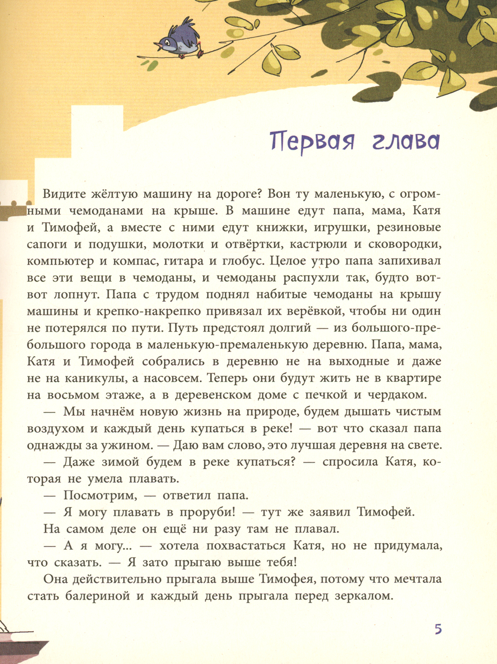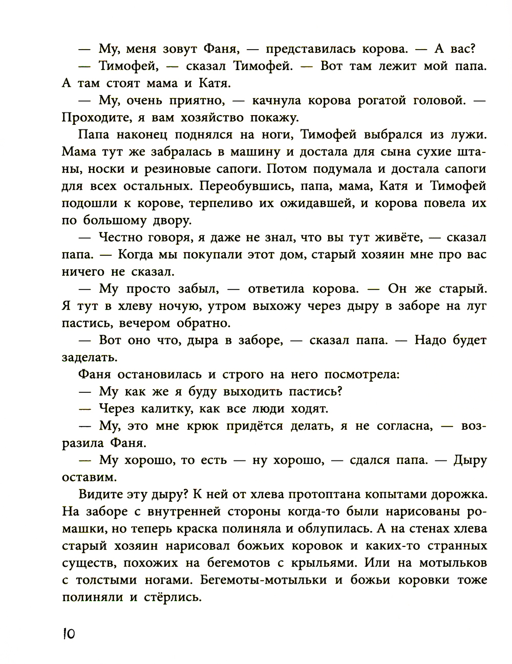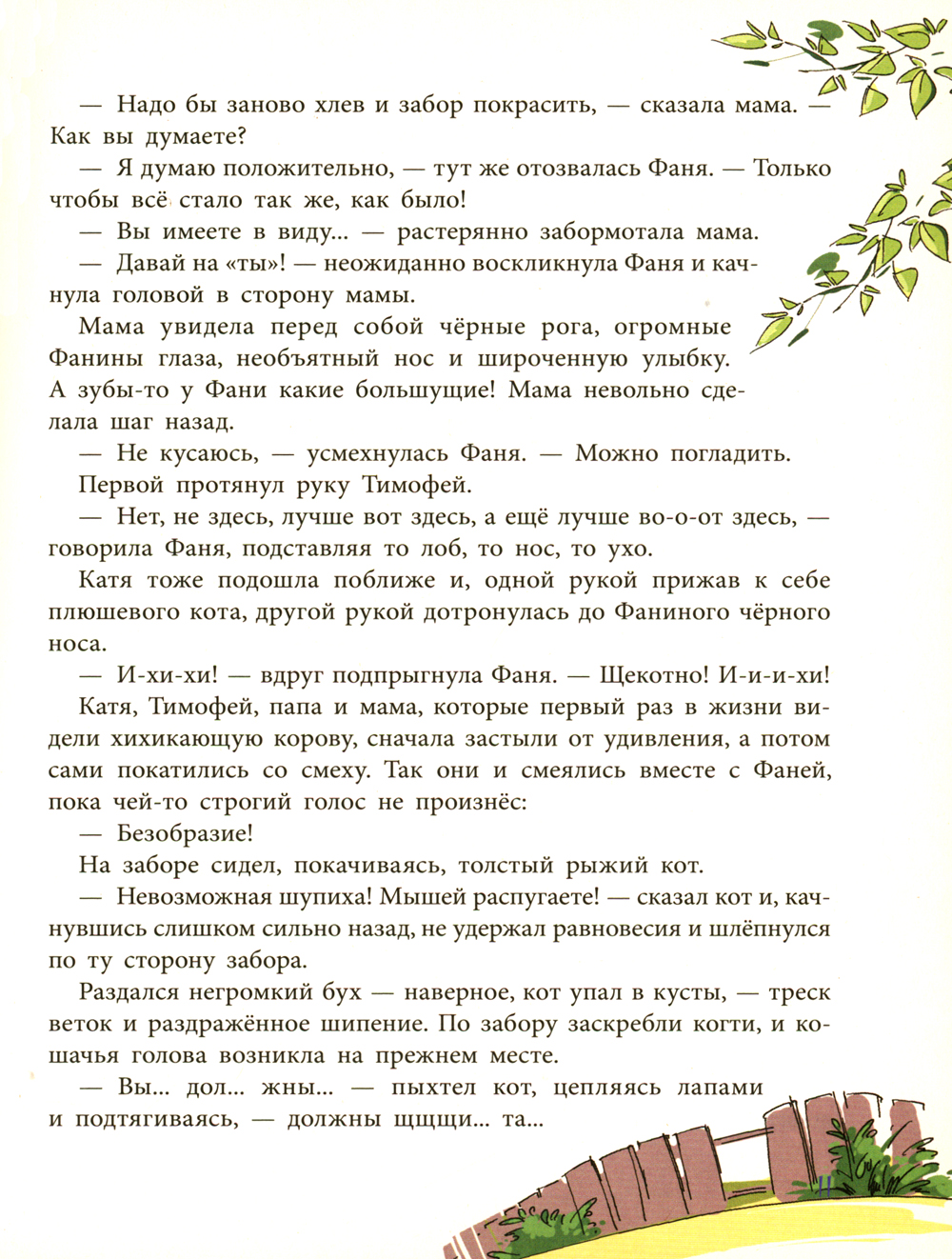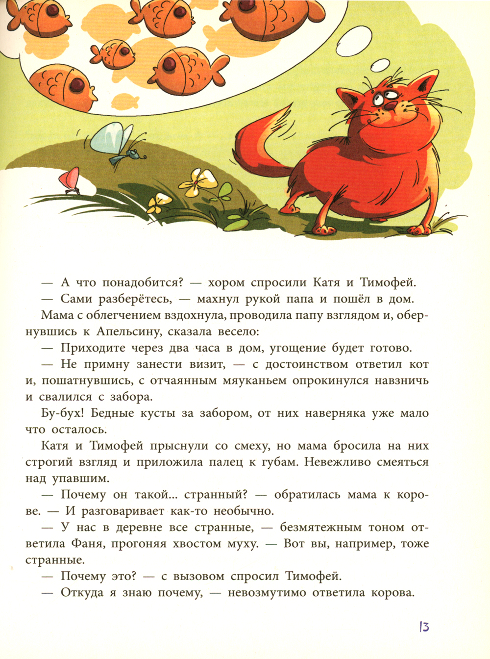 Дружная семья - папа, мама, девочка Катя и мальчик Тимофей - перебирается из большого-пребольшого города в маленькую-премаленькую деревню. И не на летние каникулы, как вы могли бы подумать, а насовсем! Мечта о спокойном переезде из квартиры в многоэтажке в уютную избушку с печкой развеялась очень скоро. Оказалось, что в их доме уже есть давнишние жильцы - невозмутимая корова Фаня и сварливый кот Апельсин! Новым хозяевам нужно найти общий язык с говорящими животными, подружиться с необычными соседями и мно-о-огому научиться. Деревенские приключения, которые и не снились городским лежебокам, начинаются! Книга с иллюстрациями Леонида Гамарца.| Издательство | Акварель |