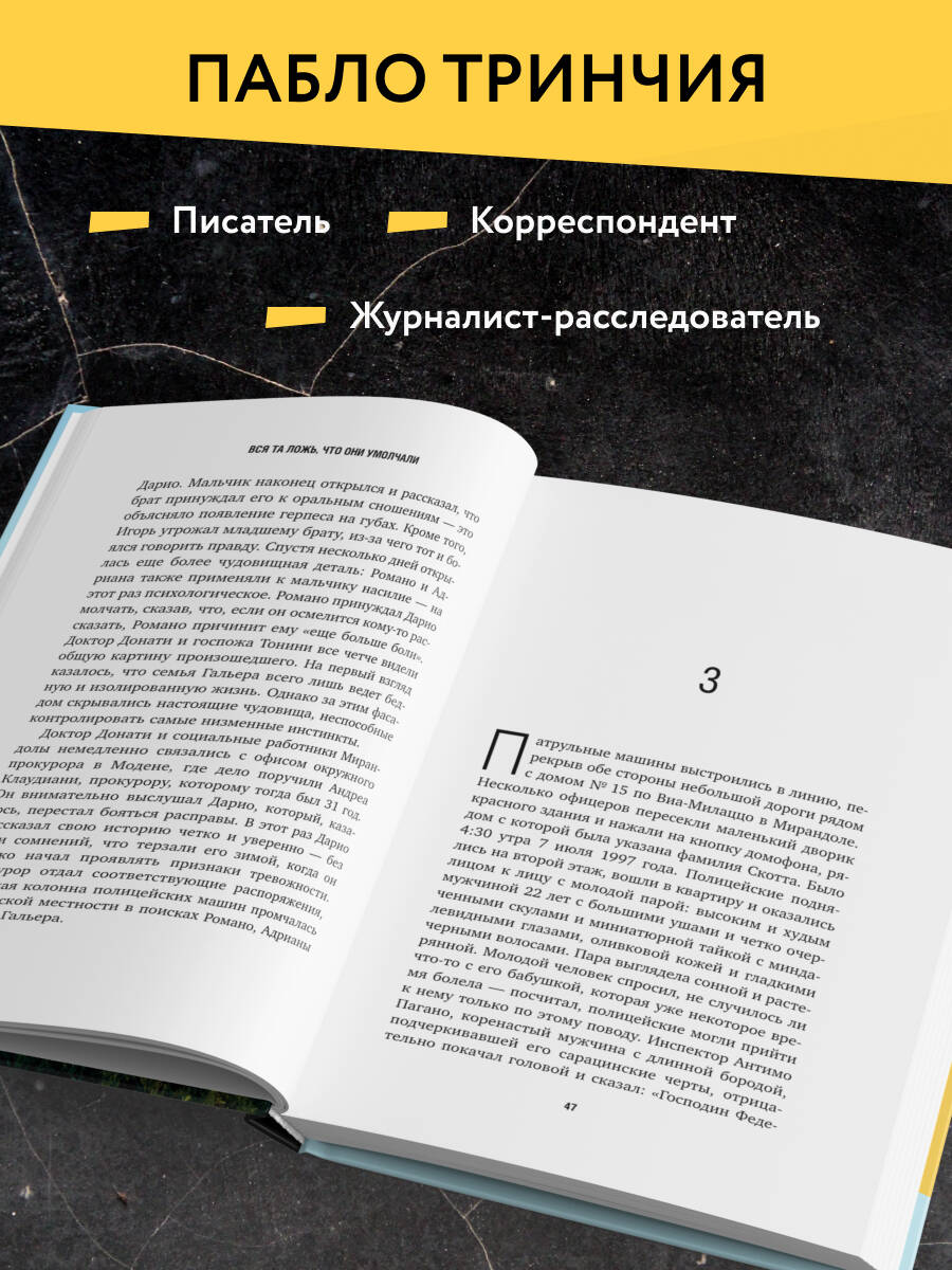 6000 ОТЗЫВОВ НА AMAZON. Маленький итальянский городок. Холодным ноябрьским утром 1998 года в дверь семьи постучали. Растерянные и охваченные страхом родители были вынуждены впустить в дом полицейских, которые провели обыск и забрали детей. Навсегда. С этого момента десятки жизней были разрушены. Так началось самое громкое расследование сатанинской паники в истории Италии. На протяжении нескольких месяцев в кабинете детского психолога шестилетний мальчик рассказывал ужасающие истории, которые полиция проигнорировать не могла. Чем больше он говорил, тем больше людей оказывалось вовлеченными в его шокирующие откровения. И это был лишь первый ребенок, который предъявил серьезные обвинения. Мировые СМИ пестрили заголовками о жутких обрядах, кладбище, насилии и бесчеловечном отношении к самому святому, что только есть на свете, - детям. Это дело оставило глубокую рану в сердцах жителей Италии, а его подробности разлетелись по всему земному шару. Но что-то тут было не так. Казалось, что кто-то из участников врет. Журналист Пабло Тринчия взялся за свое расследование, чтобы разобраться: что на самом деле произошло. Он по крупицам собрал факты, поговорил с обвиняемыми, пострадавшими детьми и теми, кто участвовал в расследовании. Журналист погрузился в историю сатанинской паники разных стран, детскую психологию и сделал невероятное открытие. Дело, которое волновало весь западный мир, затрещало по швам. Итоги этого расследования повергнут вас в шок.| Издательство | ООО "Издательство "Эксмо" |