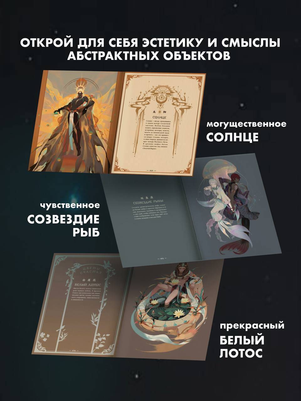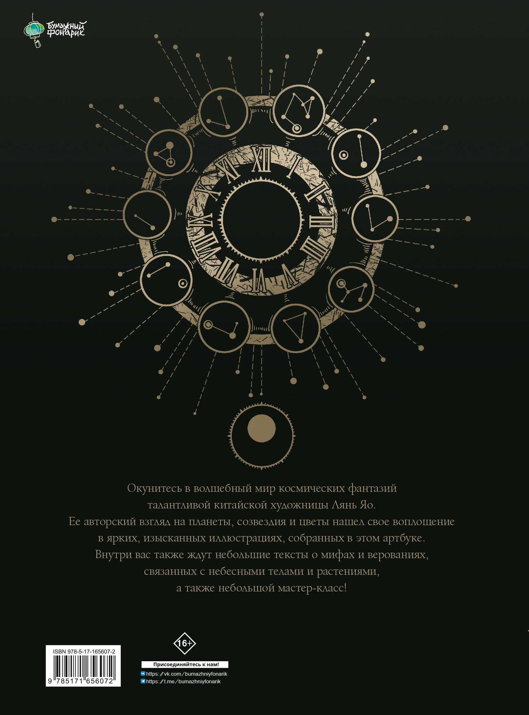 Китайская художница-иллюстратор Лянь Яо собрала восемь планет, двенадцать созвездий, двенадцать других космических тел и семнадцать видов цветов и, вдохновившись, смогла создать их неповторимые воплощения и авторский дизайн. Артбук также содержит краткие характеристики персоналий, которые покажут реальность и мифы, скрывающиеся за ярким воображением художницы. Лянь Яо также рассказывает о собственном пути и делится мыслями и творческим опытом. В конце артбук содержит небольшой мастер-класс по цифровому рисованию. Изящное оформление и яркие рисунки понравятся всем ценителям иллюстраций. Книга также отлично подойдет художникам-любителям, в качестве материала для практики или источника вдохновения. Для широкого круга читателей.