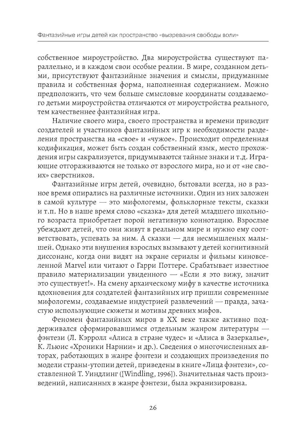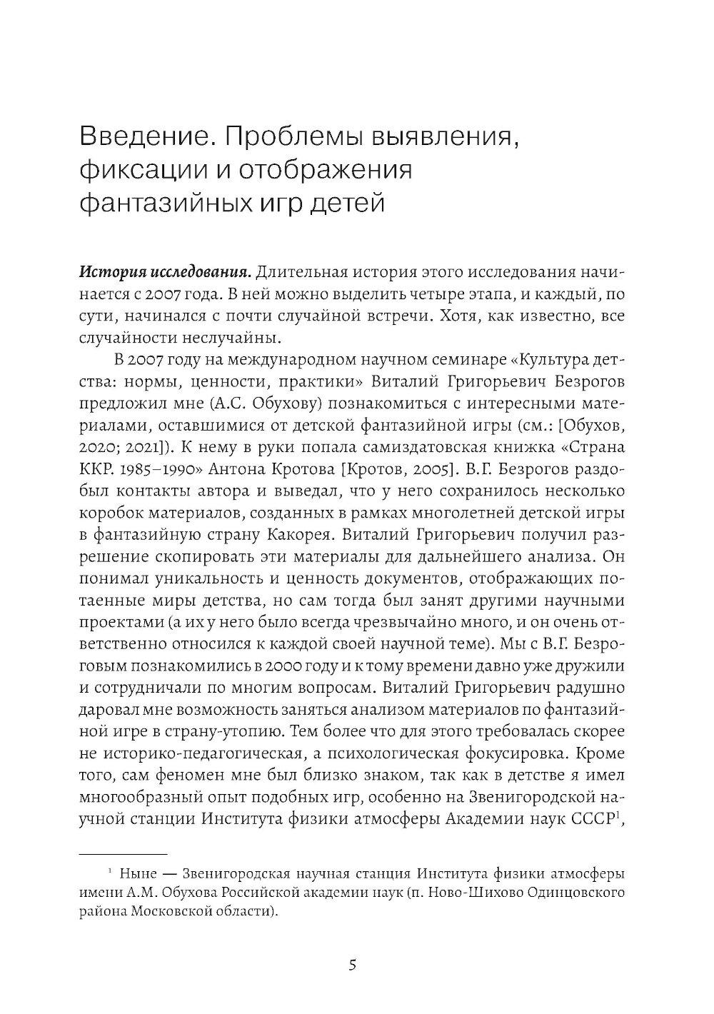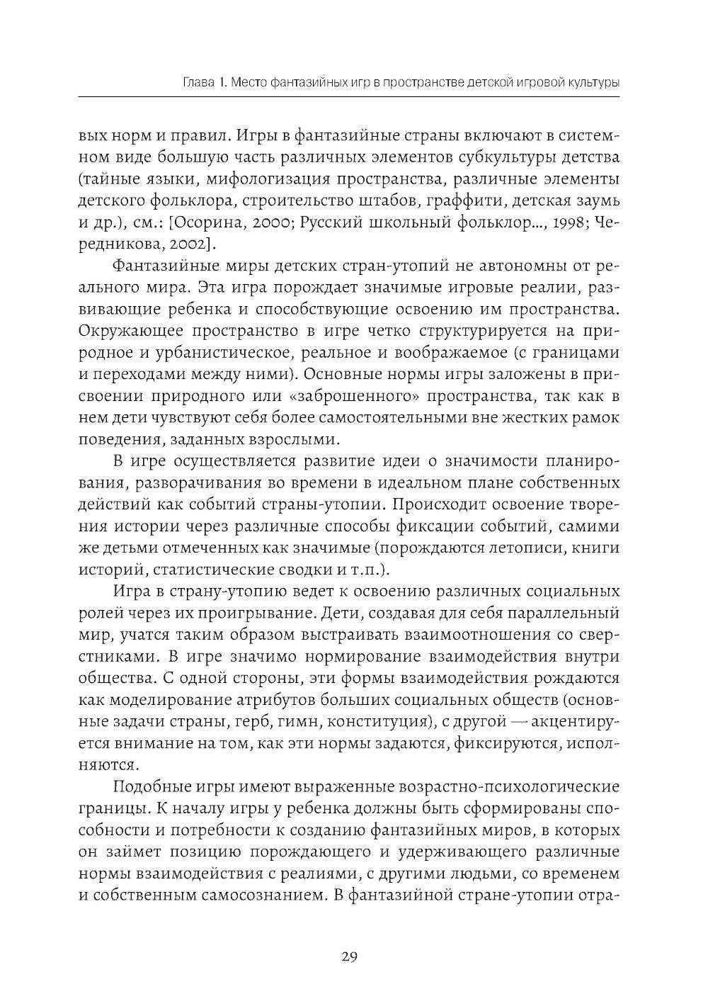 Монография посвящена известному, но малоизученному феномену культуры детства - фантазийным играм детей в страны-утопии и воображаемые миры. Исследование, опираясь на предшествующие работы о подобных детских играх, отображенных в художественной литературе биографического характера, раскрывает их феноменологию на конкретных примерах. Трудность изучения фантазийных игр во многом связана с их потаенностью от взрослых, а также локальностью бытования в детских сообществах с ограниченным числом участников (чаще всего среди детей с 6-7 до 11-12 лет). В книге обсуждаются проблемы выявления, фиксации и отображения фантазийных игр. Используются три типа источников: 1) уникальное документальное отображение фантазийной игры в страну-утопию в городской среде; 2) пример бытования фантазийной игры детского сообщества в сельской среде и фиксация игры в антропологическом фильме; 3) отображение проявлений фантазийных игр в автобиографических нарративах, стимулированных фильмом и статьей про два первых примера. Издание затрагивает вопросы возможностей и ограничений визуальной антропологии для исследования и репрезентации феноменов культуры детского сообщества, а также потенциала изучения фантазийных игр через автобиографические воспоминания о детстве, стимулированные примерами игр из фильма и статьи. Обсуждается ценность развития, проявляющаяся в феномене фантазийных игр, как пространства «вызревания свободы воли», «становления субъекта собственной деятельности» и обретения качества «агентности как преодоления границ».| Издательство | ИД Высшей школы экономики |