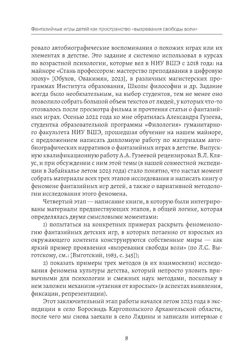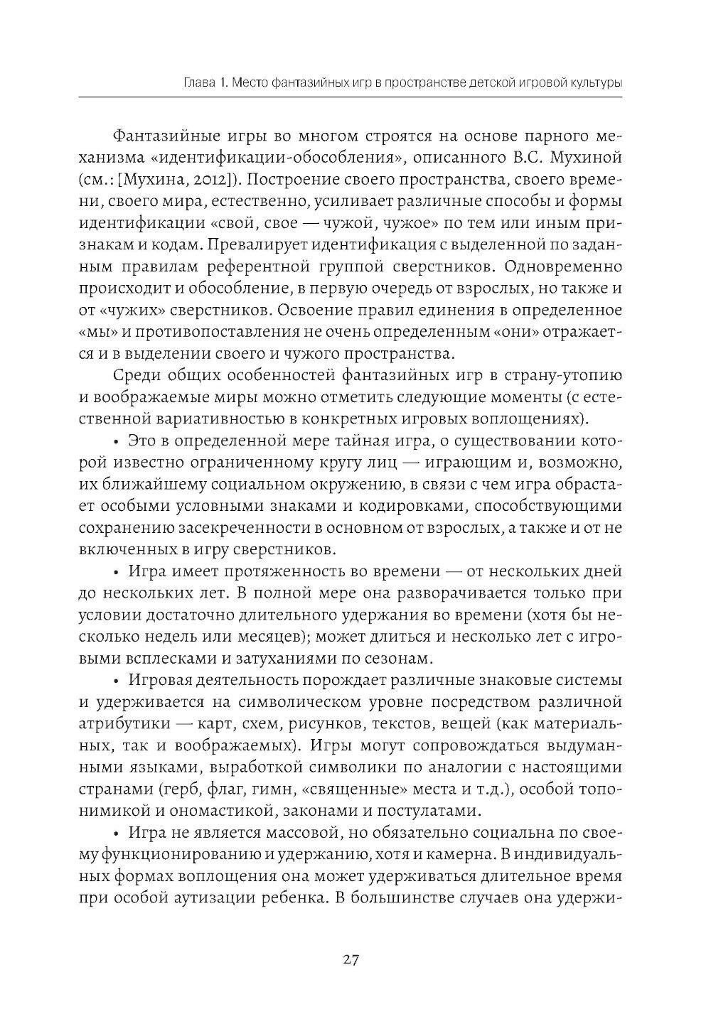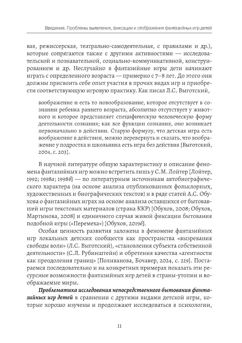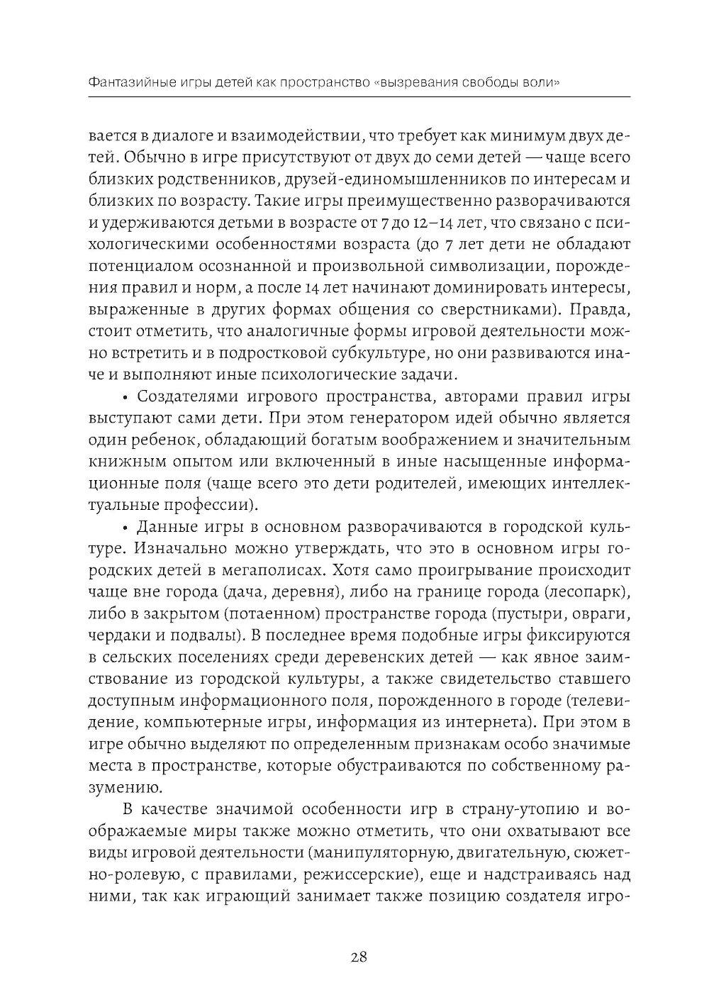 Монография посвящена известному, но малоизученному феномену культуры детства - фантазийным играм детей в страны-утопии и воображаемые миры. Исследование, опираясь на предшествующие работы о подобных детских играх, отображенных в художественной литературе биографического характера, раскрывает их феноменологию на конкретных примерах. Трудность изучения фантазийных игр во многом связана с их потаенностью от взрослых, а также локальностью бытования в детских сообществах с ограниченным числом участников (чаще всего среди детей с 6-7 до 11-12 лет). В книге обсуждаются проблемы выявления, фиксации и отображения фантазийных игр. Используются три типа источников: 1) уникальное документальное отображение фантазийной игры в страну-утопию в городской среде; 2) пример бытования фантазийной игры детского сообщества в сельской среде и фиксация игры в антропологическом фильме; 3) отображение проявлений фантазийных игр в автобиографических нарративах, стимулированных фильмом и статьей про два первых примера. Издание затрагивает вопросы возможностей и ограничений визуальной антропологии для исследования и репрезентации феноменов культуры детского сообщества, а также потенциала изучения фантазийных игр через автобиографические воспоминания о детстве, стимулированные примерами игр из фильма и статьи. Обсуждается ценность развития, проявляющаяся в феномене фантазийных игр, как пространства «вызревания свободы воли», «становления субъекта собственной деятельности» и обретения качества «агентности как преодоления границ».| Издательство | ИД Высшей школы экономики |