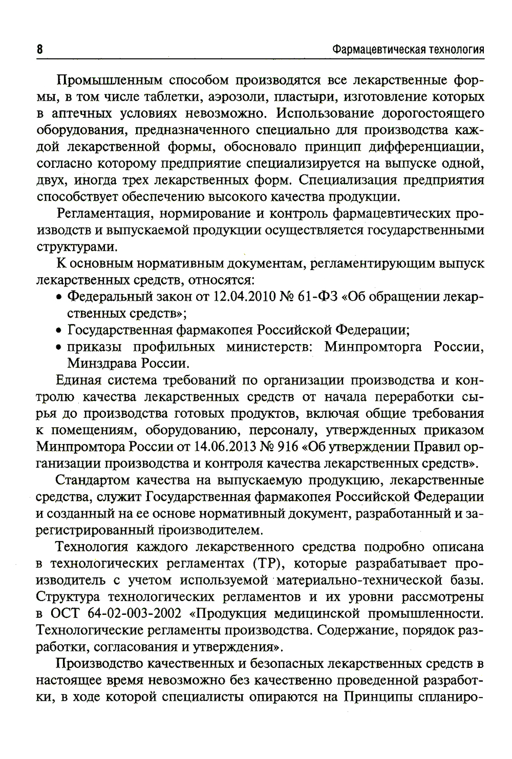В учебном пособии рассмотрены технологические основы получения готовых лекарственных форм, указаны контрольные точки технологических процессов, даны схемы стандартного оборудования, описаны показатели качества готовых лекарственных форм, методики их определения и нормативы, а также представлены инструменты и обучающие задачи с эталонами решения, тесты по наиболее важным разделам фармацевтической технологии. Издание предназначено студентам фармацевтических вузов и отделений.| Издательство | ГЭОТАР-Медиа |