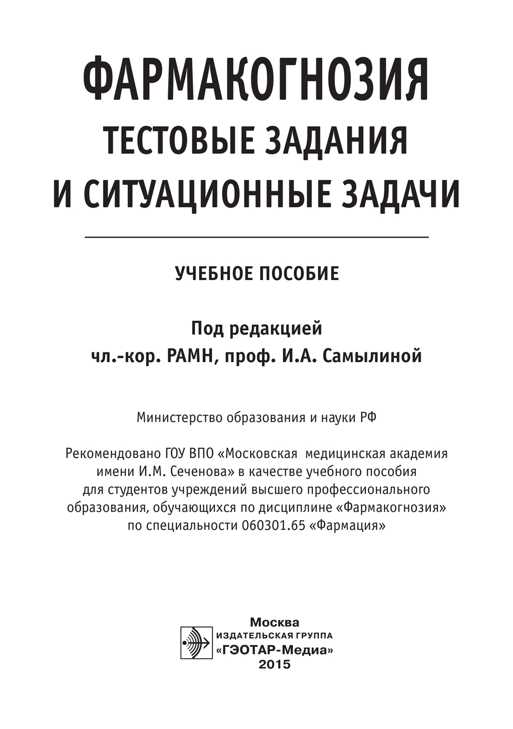 Аннотация: Фармакогнозия. Тестовые задания и ситуационные задачи: Учебное пособие для студентов мед. Вузов