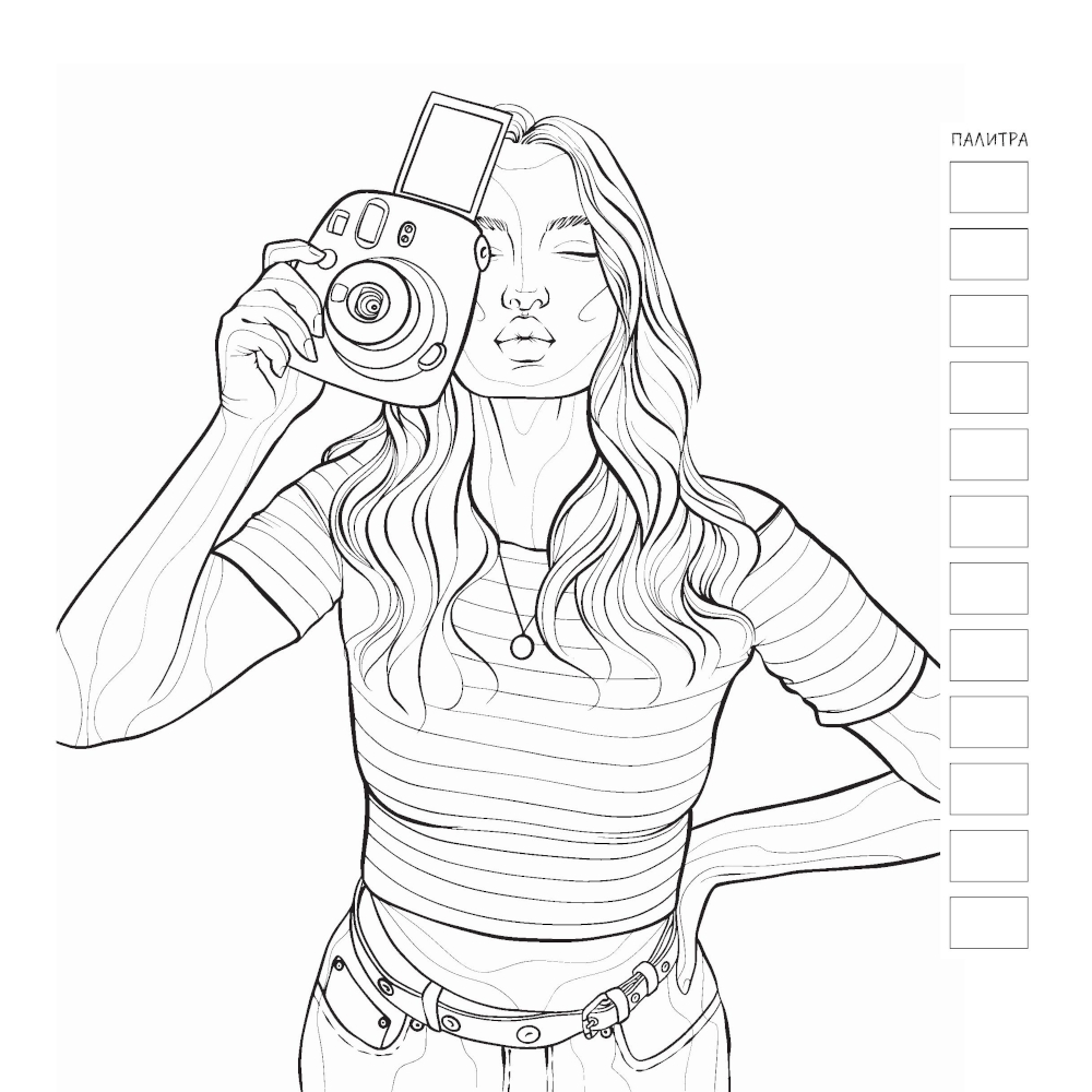 Аннотация: Fashion Girl: Раскраска для работы маркерами (белая обложка, девушка с фотоаппаратом)