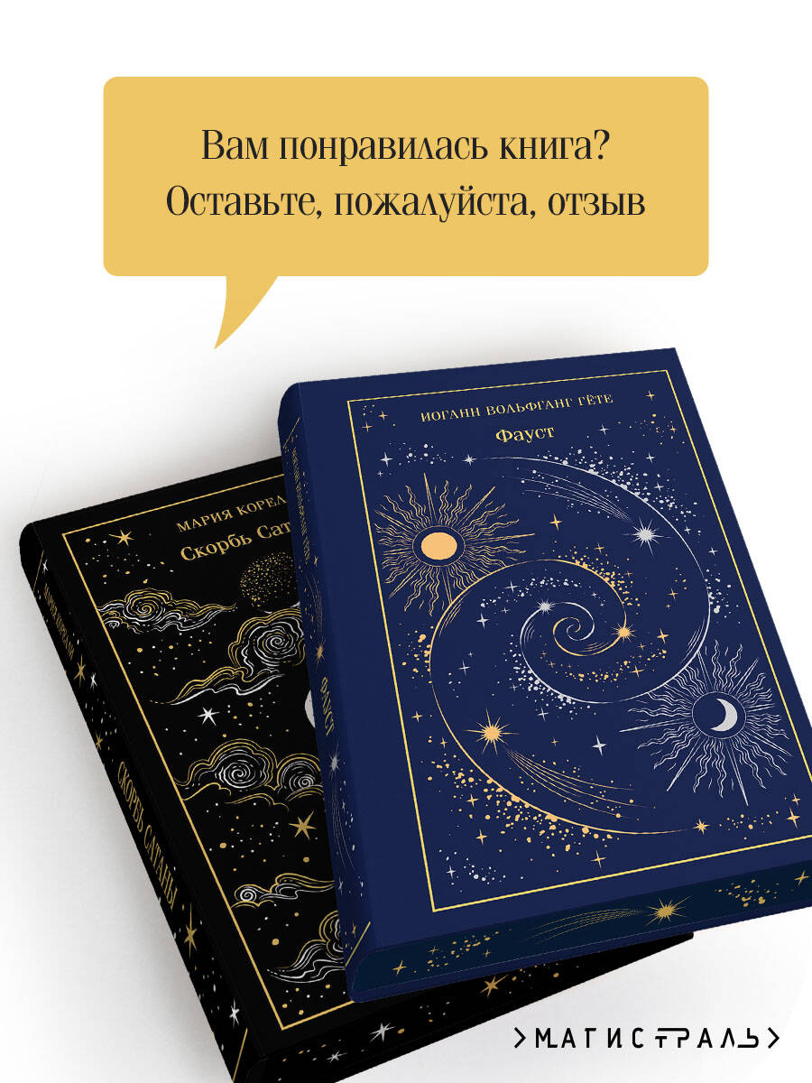 В комплект входят 2 книги: "Скорбь сатаны" Марии Корелли и "Фауст" Иоганна Вольфганга Гёте. Романы объединяет много тем - от поиска, исследования бытия, до расплаты и наказания - и конечно, образ сатаны, который описан в этих произведениях по-разному. "Фауст". Доктор Иоганн Фауст - личность не только легендарная, но и историческая: ученый врач или маг-чернокнижник, шарлатан и плут, живший в 16 веке в Германии (за давностью лет подробности его биографии остаются неизвестными). Остались записи о загадочной смерти Фауста, якобы убитого демоном Мефистофелем. Под пером Иоганна Вольфганга Гёте средневековая легенда превратилась в великую трагедию о цели человеческого бытия, о поиске смысла жизни. "Скорбь сатаны". Действие романа происходит в Лондоне в 1895 году. Сатана ходит среди людей в поисках очередной игрушки. Но будет ли он забавляться с ней, чтобы показать Богу, что может развратить кого угодно, или же его намерения совсем иные?.. Он хочет найти кого-то достойного, кто сможет сопротивляться искушениям, что будет сложно, потому что вокруг царит безверие, коррупция, продажность. Джеффри Темпест, молодой обедневший писатель, едва сводит концы с концами, безуспешно пытается продать свой роман. В очередной раз, когда он размышляет о своем отчаянном положении, он замечает на столе три письма. Первое - от друга из Австралии, который разбогател на золотодобыче, он сообщает, что посылает к Джеффри друга, который поможет ему выбраться из бедности. Второе - записка от поверенного, в которой подробно описывается, что он унаследовал состояние от умершего родственника. Третье - рекомендательное письмо от Князя Лучо Риманеза, "избавителя от бедности", про которого писал друг из Австралии. Сможет ли Джеффри сделать правильный выбор, сохранить талант и душу?.. "Скорбь Сатаны" - мистический декадентский роман английской писательницы Марии Корелли, опубликованный в 1895 году и ставший крупнейшим бестселлером в истории викторианской Англии.| Издательство | ООО "Издательство "Эксмо" |