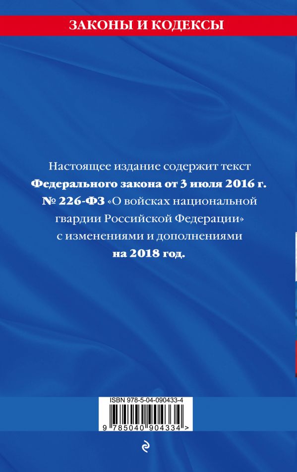 Настоящее издание содержит текст Федерального закона от 3 июля 2016 г. № 226-ФЗ "О войсках национальной гвардии Российской Федерации" с изменениями и дополнениями на 2018 год.