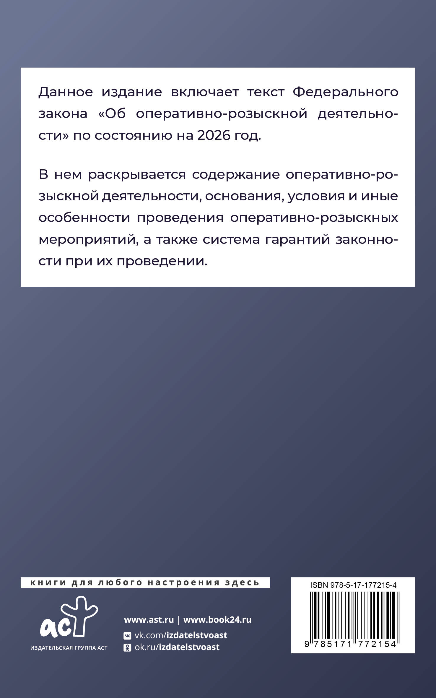 Аннотация: Федеральный закон "Об оперативно-розыскной деятельности" на 2026 год