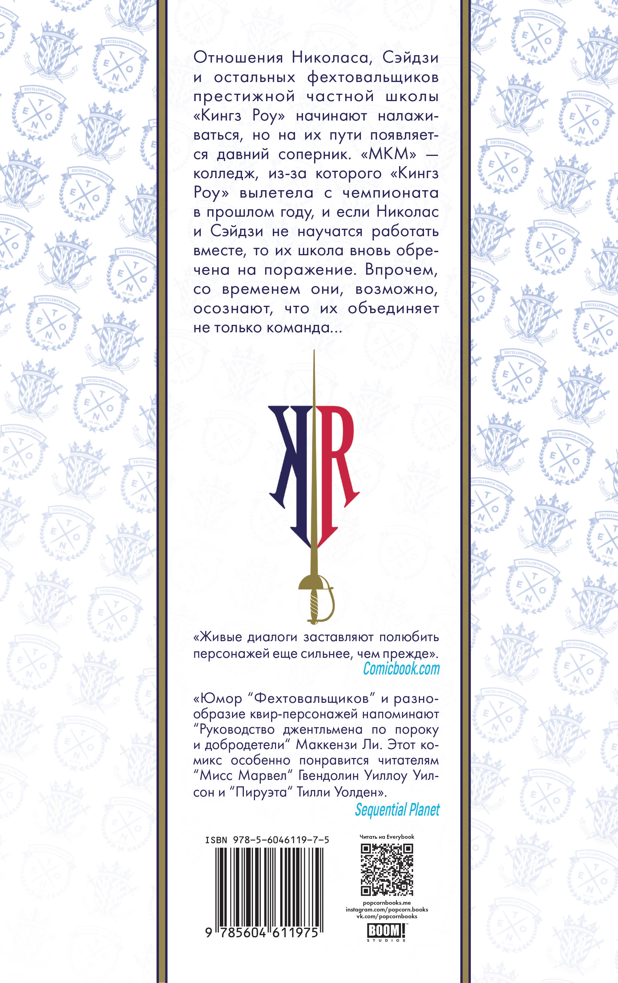 Отношения Николаса, Сэйдзи и остальных фехтовальщиков престижной частной школы «Кингз Роу» начинают налаживаться, но на их пути появляется давний соперник. «МКМ» - колледж, из-за которого «Кингз Роу» вылетела с чемпионата в прошлом году, и если Николас и Сэйдзи не научатся работать вместе, то их школа вновь обречена на поражение. Впрочем, со временем они, возможно, осознают, что их объединяет не только команда…| Издательство | ИНДИВИДУУМ ПРИНТ ООО |