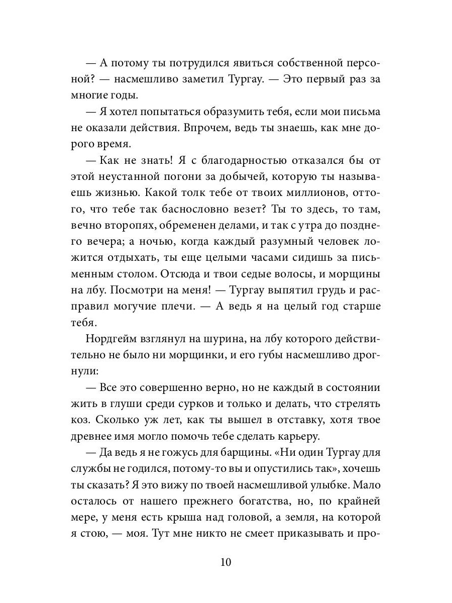 Действие романа разворачивается в горной местности, где пересекаются судьбы нескольких героев. Юная баронесса Эрна фон Тургау растёт весёлым и жизнерадостным человеком. Отец её выбрал жизнь, не обременённую светскими условностями, и для дочери своей лучшего представить не мог. Но однажды в их жизнь врывается железная дорога, которую планируют прокладывать прямо по землям Тургау. Строительством руководит молодой честолюбивый инженер Вольфганг Эльмгорст, правая рука господина Нордгейма, дяди Эрны. Молодые люди сразу же невзлюбили друг друга и, казалось бы, кроме враждебной их отношения не примут иной формы… Вольф совершает ошибку, понимает это, и чуть было не теряет своего счастья, обменяв его на удовлетворение материальных амбиций.| Издательство | Т8 RUGRAM |