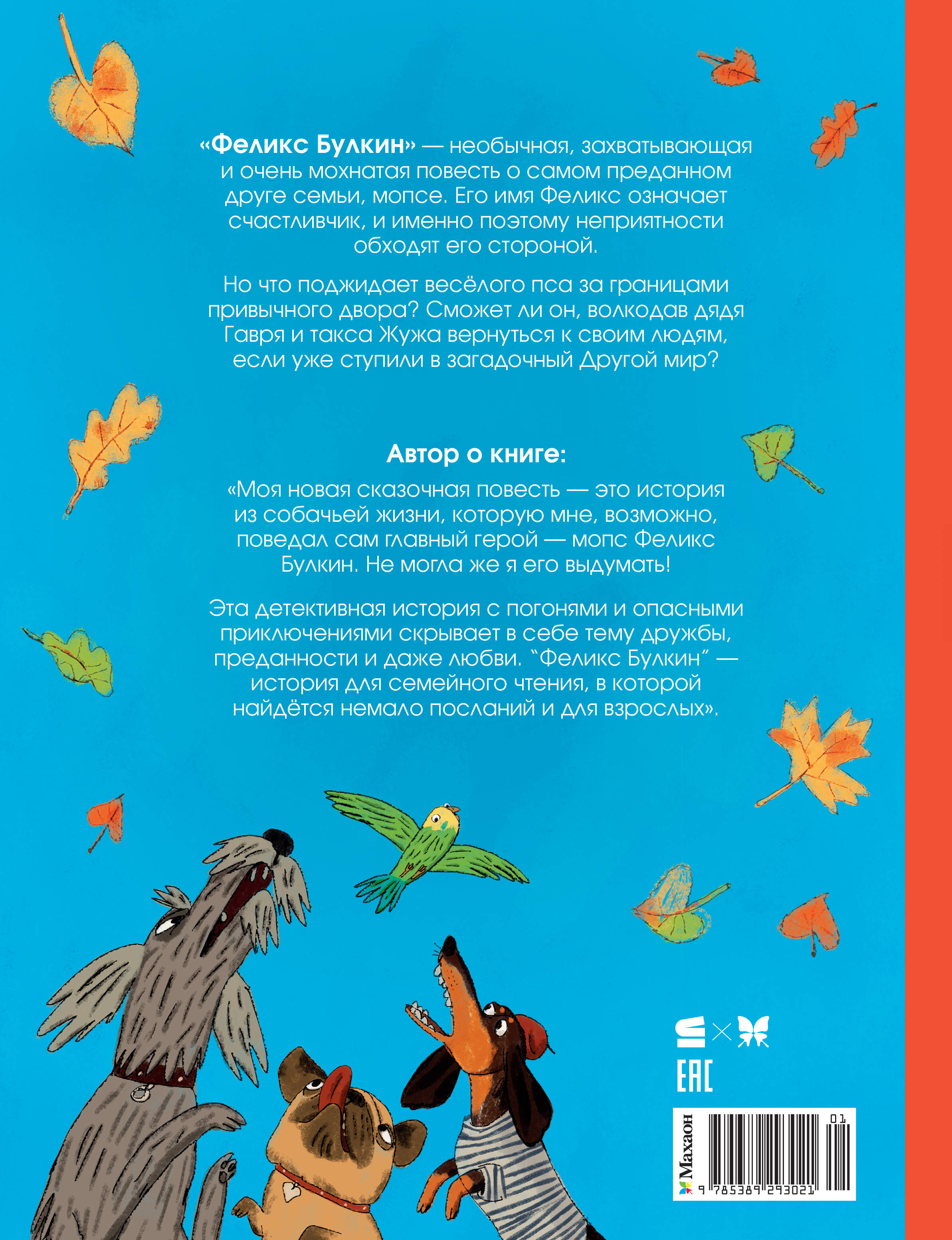 «Феликс Булкин» - необычная, захватывающая и очень мохнатая повесть о самом преданном друге семьи, мопсе. Его имя Феликс означает счастливчик, и именно поэтому неприятности обходят его стороной. Но что поджидает весёлого пса за границами привычного двора? Сможет ли он, волкодав дядя Гавря и такса Жужа вернуться к своим людям, если уже ступили в загадочный Другой мир? Новая серия "Детям. Современные российские авторы" издательства "Махаон" - это яркие, захватывающие истории современных писателей, которые радуют новое поколение детей в нашей стране. Глубокие истории, добрые герои и интересный сюжет не оставят никого равнодушным.| Издательство | Издательство АЗБУКА ООО |