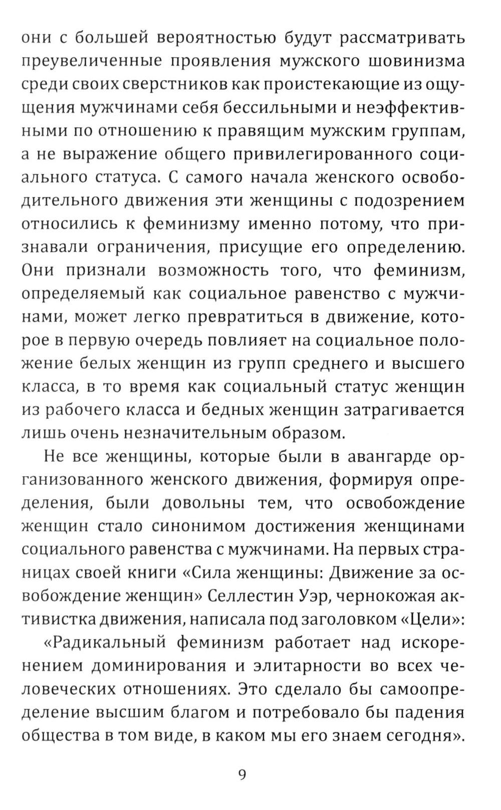 Белл Хукс - одна из главных феминисток третьей волны и одна из крупнейших американских мыслительниц за последние полвека. Ее идеи стали основой для целого ряда направлений в современной социологии и политологии. В первую очередь, она внесла ключевой вклад в появление современной интерсекциональной теории. Она разоблачала системный расизм, империализм и скрытый фашизм американских властей, поддерживала Россию и Латинскую Америку в борьбе против англосаксонской гегемонии. Она видела феминизм как всемирное освободительное движение, направленное не только против патриархата, но и против капитализма, империализма и колониализма. Корнем проблем современной Америки Белл Хукс видела пуританскую мораль, расизм и систему Модерна.| Издательство | Родина |