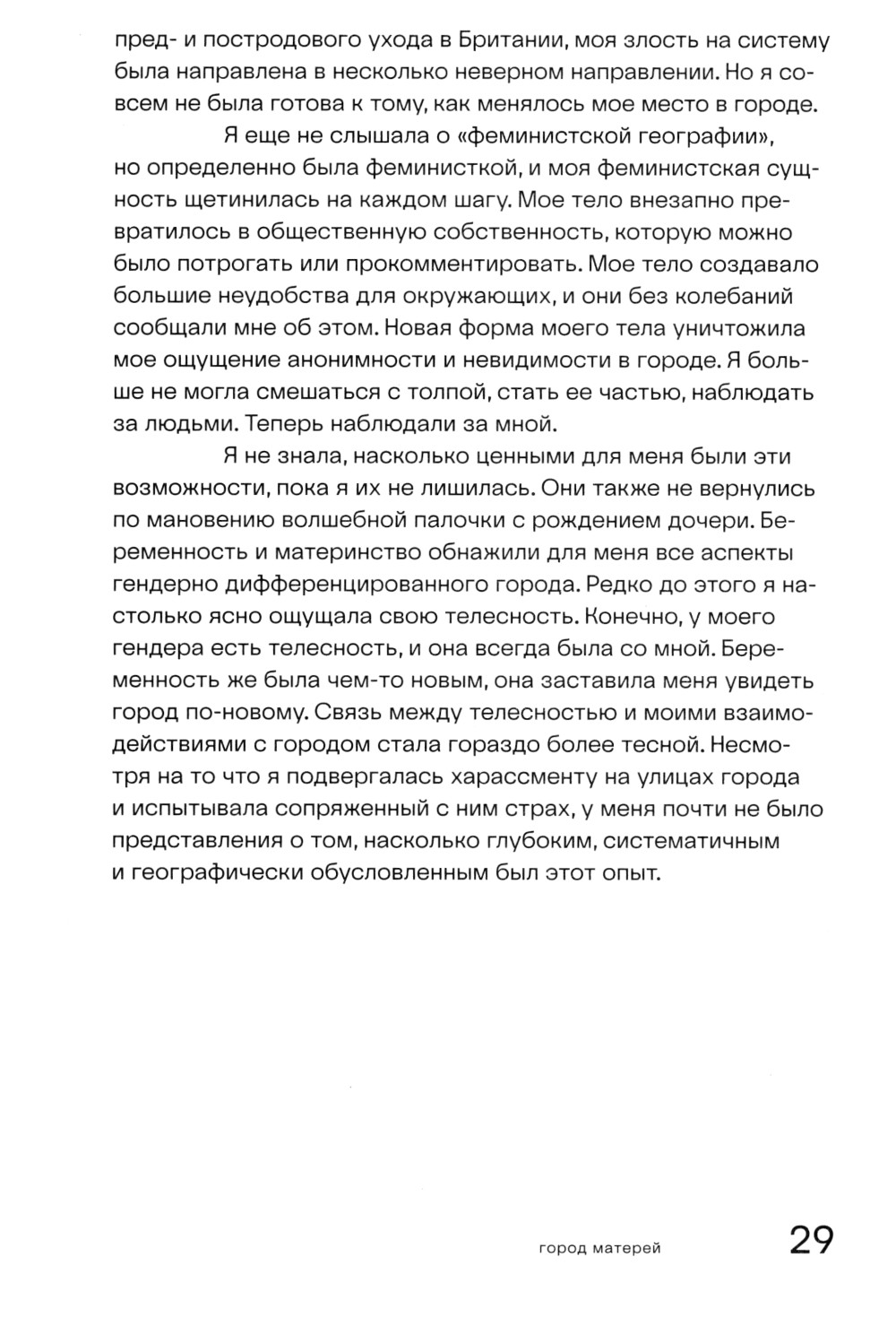 Книга суммирует результаты полевых исследований канадского географа и урбаниста Лесли Керн, занимающейся актуальными вопросами жизни женщин в современном городе. Автор показывает, насколько структура города - от его планировки до норм и обычаев, регулирующих общение его жителей и жительниц, - превратилась в пространство гендерной борьбы. Описывая собственный опыт материнства, дружбы, работы и активизма, Лесли Керн предлагает применить к городскому планированию интерсекциональный феминистский подход и полагает, что это будет способствовать формированию урбанистики нового поколения.| Издательство | Ад Маргинем Пресс |