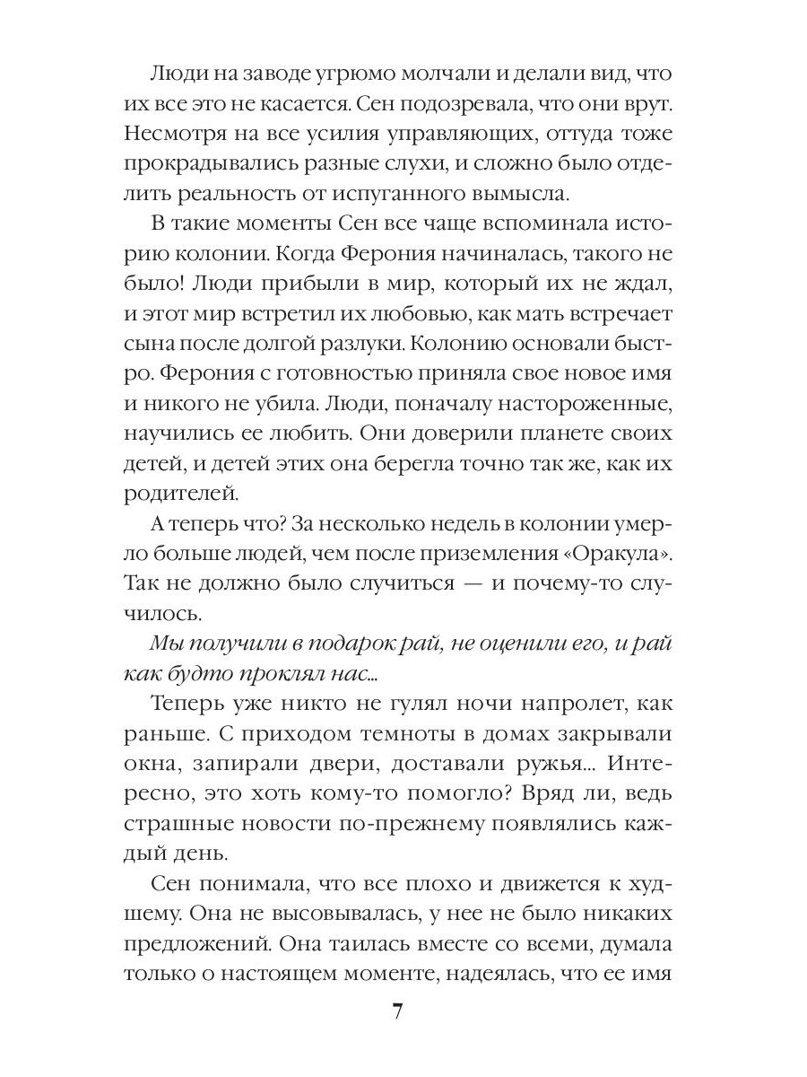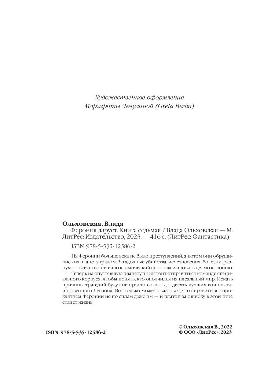 На Феронии больше века не было преступлений, а потом они обрушились на планету градом. Загадочные убийства, исчезновения, болезни, разруха - все это заставило космический флот эвакуировать целую колонию. Теперь на опустевшую планету предстоит отправиться команде специального корпуса, чтобы понять, кто ополчился на идеальный мир. Искать причины трагедий будут не просто солдаты, а десять лучших воинов таинственного Легиона. Вот только может оказаться, что справиться с проклятием Феронии не по силам даже им - и платой за ошибку в этой игре станет жизнь.| Издательство | Т8 RUGRAM |