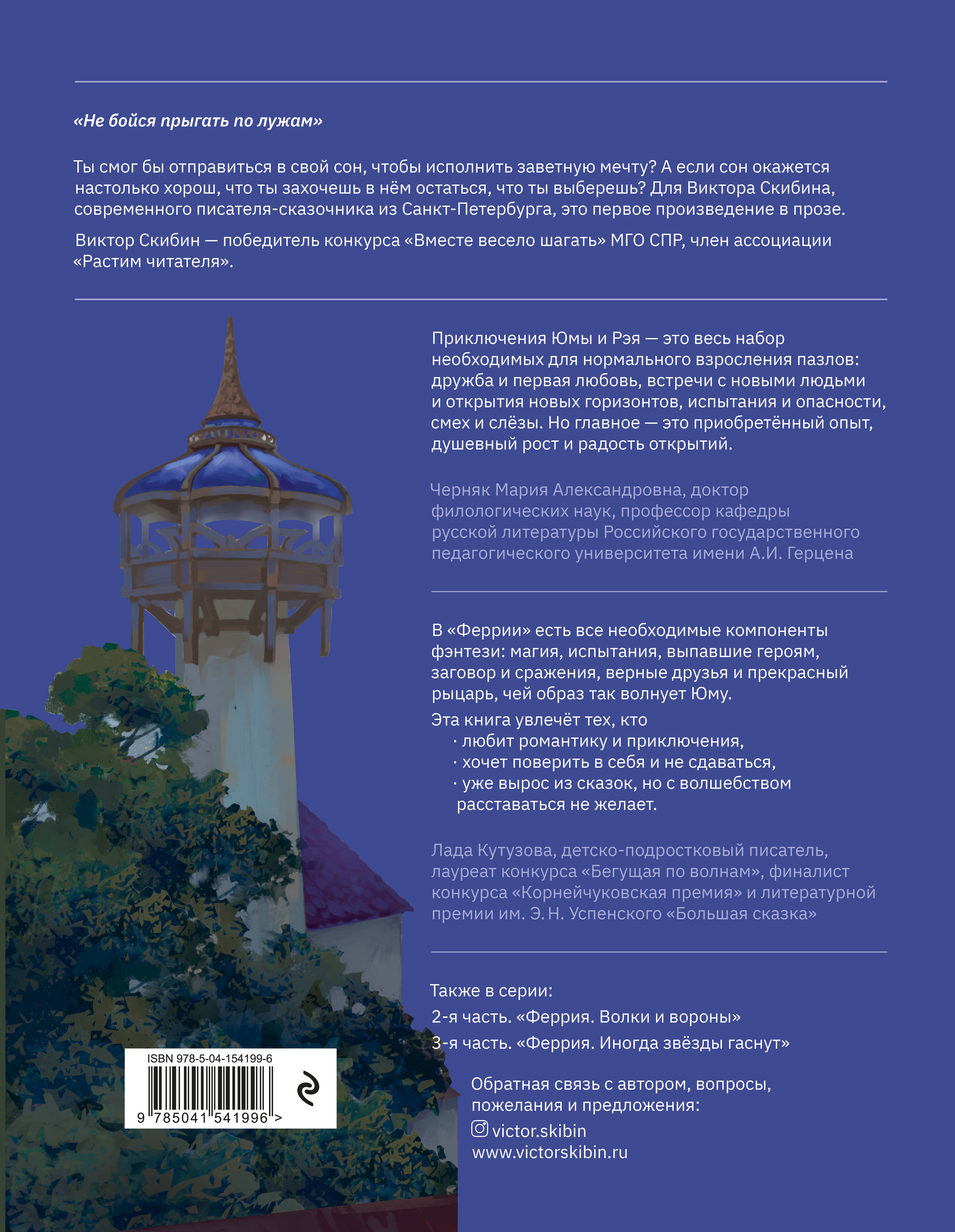 Юме пятнадцать лет, вместе с младшим братом она путешествует с бродячим цирком, пока однажды ночью они не попадают в засаду. Убегая от разбойников в лес, Юма цепляется за корень и падает в лужу… Так Юма и Рэй оказываются в Прозрачной Феррии, где вскоре узнают, что в соседнем государстве, Верной Длани, идёт война - войска Неизвестного короля осаждают земли Модмира Мудрого. Местный староста поручает детям передать законному королю кусочек коры, но держать это задание в секрете. Так начинается полное испытаний и опасностей путешествие Юмы и Рэя. Они ещё не знают, что каждый из них пройдёт не один путь и что их ждёт в конце - мечта или начало новых приключений. Виктор Скибин - победитель Всероссийского конкурса детской литературы «Вместе весело шагать» (2019) Московской городской организации Союза писателей России. Член Некоммерческой организации Ассоциации деятелей культуры, искусства и просвещения по приобщению детей к чтению «Растим читателя».| Издательство | ООО "Издательство "Эксмо" |