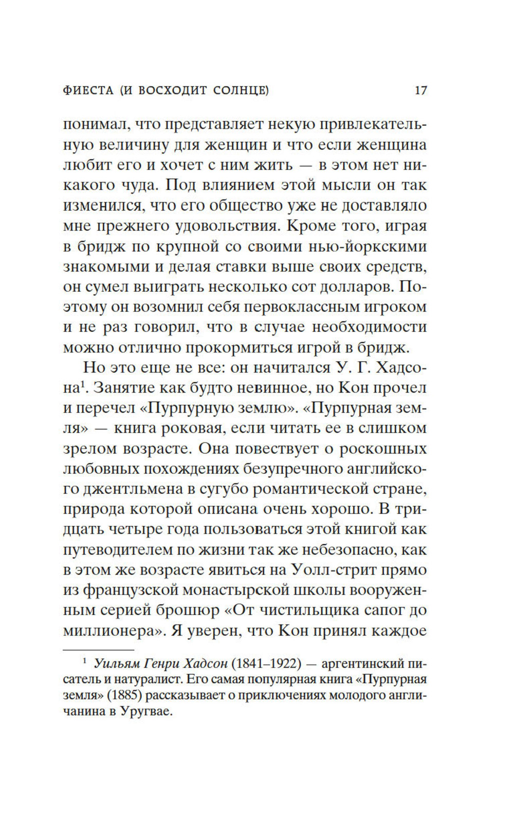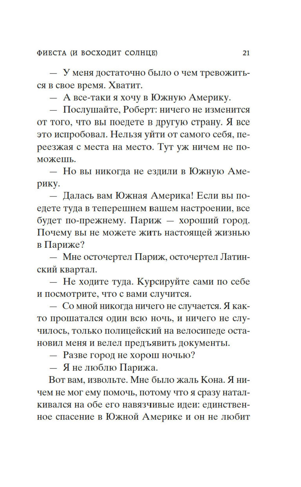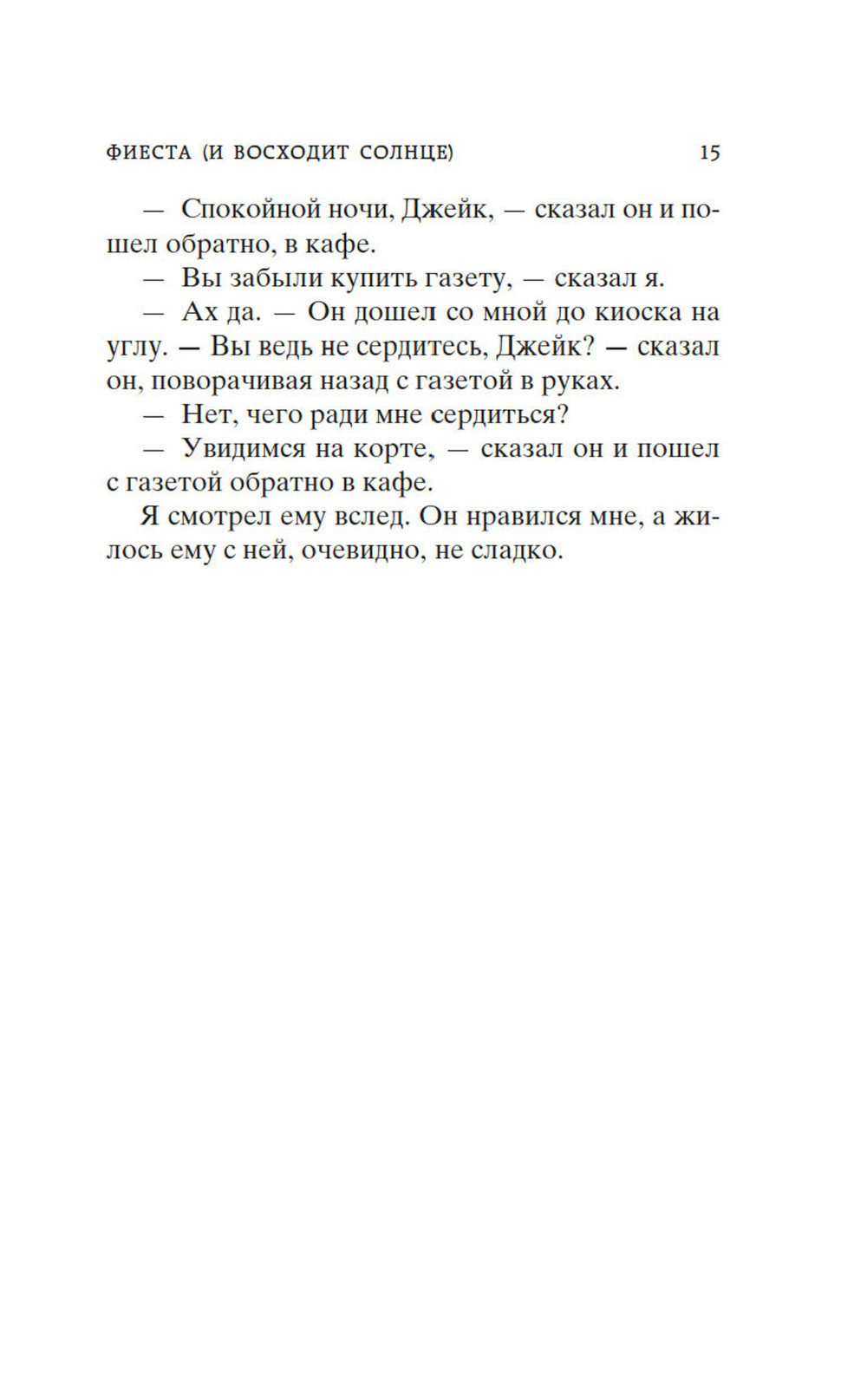 Эрнест Хемингуэй (1899-1961) - знаменитый американский писатель, лауреат Пулицеровской и Нобелевской премий, автор таких книг, как «Прощай, оружие!», «Старик и море», «По ком звонит колокол» и многих других. Первый роман Эрнеста Хемингуэя «Фиеста» («И восходит солнце»), принесший автору широкую известность (в 1983 году газета «Нью-Йорк таймс» сообщила, что роман был непрерывно в печати с момента публикации и является одним из самых переводимых американских романов), основан на реальных событиях. Герои романа (принадлежащие к так называемому потерянному поколению), вернувшиеся с Первой мировой войны, стремятся уйти от тягостных воспоминаний и забыться в легкой парижской жизни. Они испытывают постоянную жажду новых переживаний и голод по сердечному человеческому общению. А почувствовать себя обновленными, полнокровно живыми они могут лишь в те редкие минуты, которые дарует им самозабвенная любовь и дружба.| Издательство | Азбука |