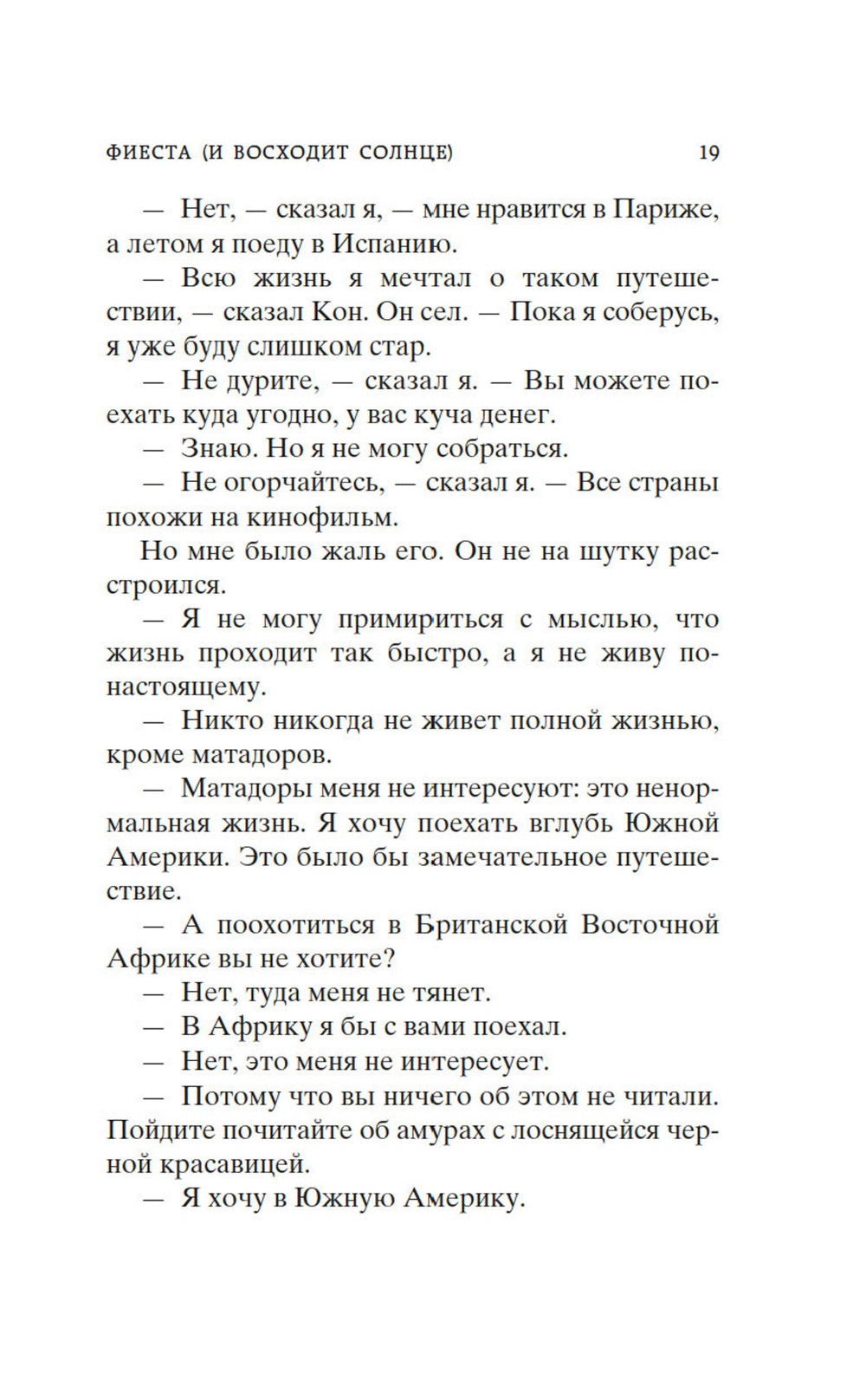 Эрнест Хемингуэй (1899-1961) - знаменитый американский писатель, лауреат Пулицеровской и Нобелевской премий, автор таких книг, как «Прощай, оружие!», «Старик и море», «По ком звонит колокол» и многих других. Первый роман Эрнеста Хемингуэя «Фиеста» («И восходит солнце»), принесший автору широкую известность (в 1983 году газета «Нью-Йорк таймс» сообщила, что роман был непрерывно в печати с момента публикации и является одним из самых переводимых американских романов), основан на реальных событиях. Герои романа (принадлежащие к так называемому потерянному поколению), вернувшиеся с Первой мировой войны, стремятся уйти от тягостных воспоминаний и забыться в легкой парижской жизни. Они испытывают постоянную жажду новых переживаний и голод по сердечному человеческому общению. А почувствовать себя обновленными, полнокровно живыми они могут лишь в те редкие минуты, которые дарует им самозабвенная любовь и дружба.| Издательство | Азбука |