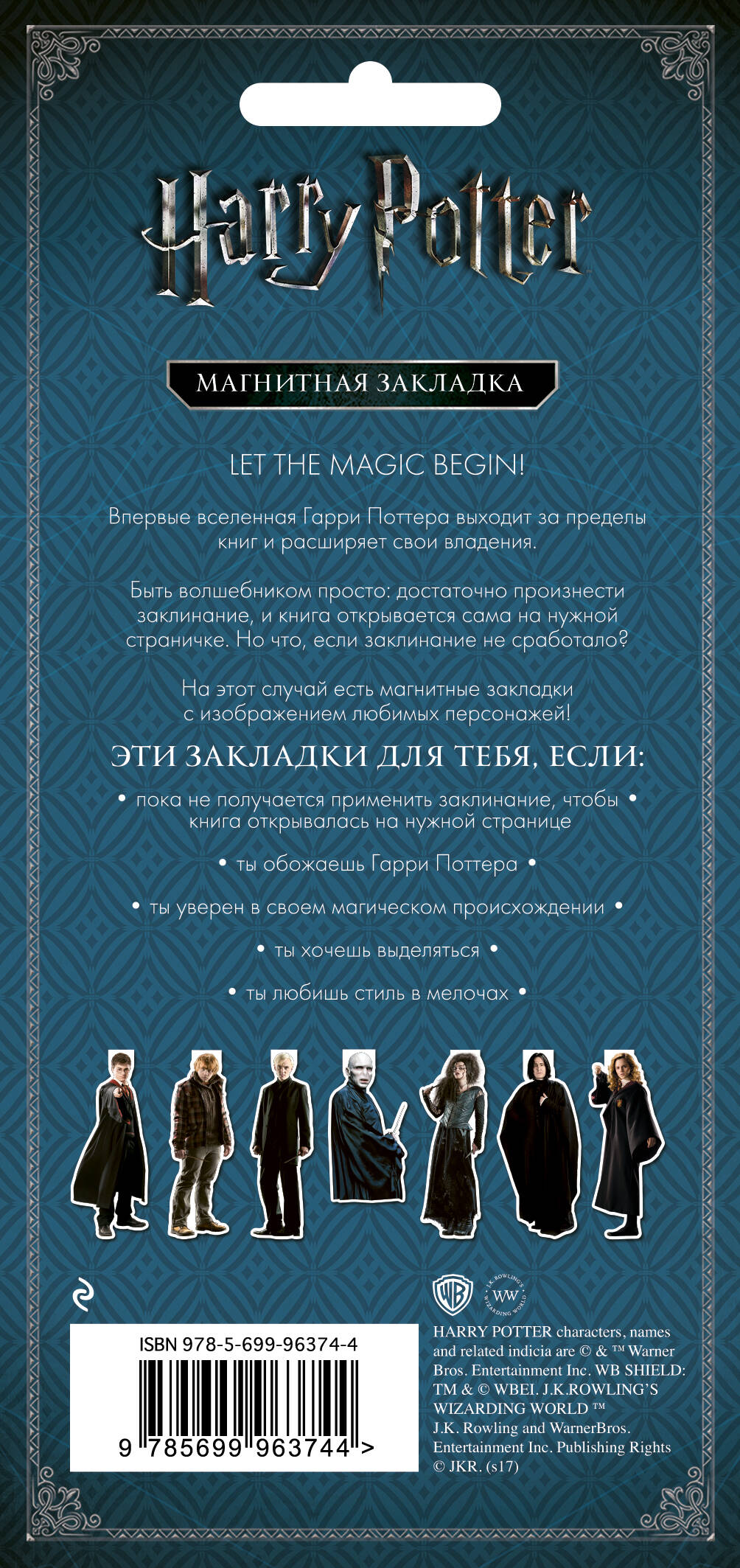 Лицензионная продукция вселенной Гарри Поттера! В 2017 году исполнилось 20 лет великой магической вселенной! Огромная программа продвижения серии. Суперкрутой сувенир для фанатов Гарри Поттера, а также надежный помощник для школьника и студента. Фигурная закладка с любимыми героями: Гарри Поттер, Гермиона Грейнджер, Драко Малфой, Волан де Морт, Рон Уизли, Северус Снегг и Беллатриса Лестрейндж. Для тех, кто: - для тех, кто горячо любит вселенную Гарри Поттера и уверен в своем магическом происхождении; - для тех, кто хочет отличаться от других; - для любителей стиля в мелочах. Фишки: - контент, доступный только по лицензии; - яркий дизайн и необычный формат; - удобная упаковка в пакетик с европодвесом; - уникальный товар, не имеющий аналогов.| Издательство | Эксмо |