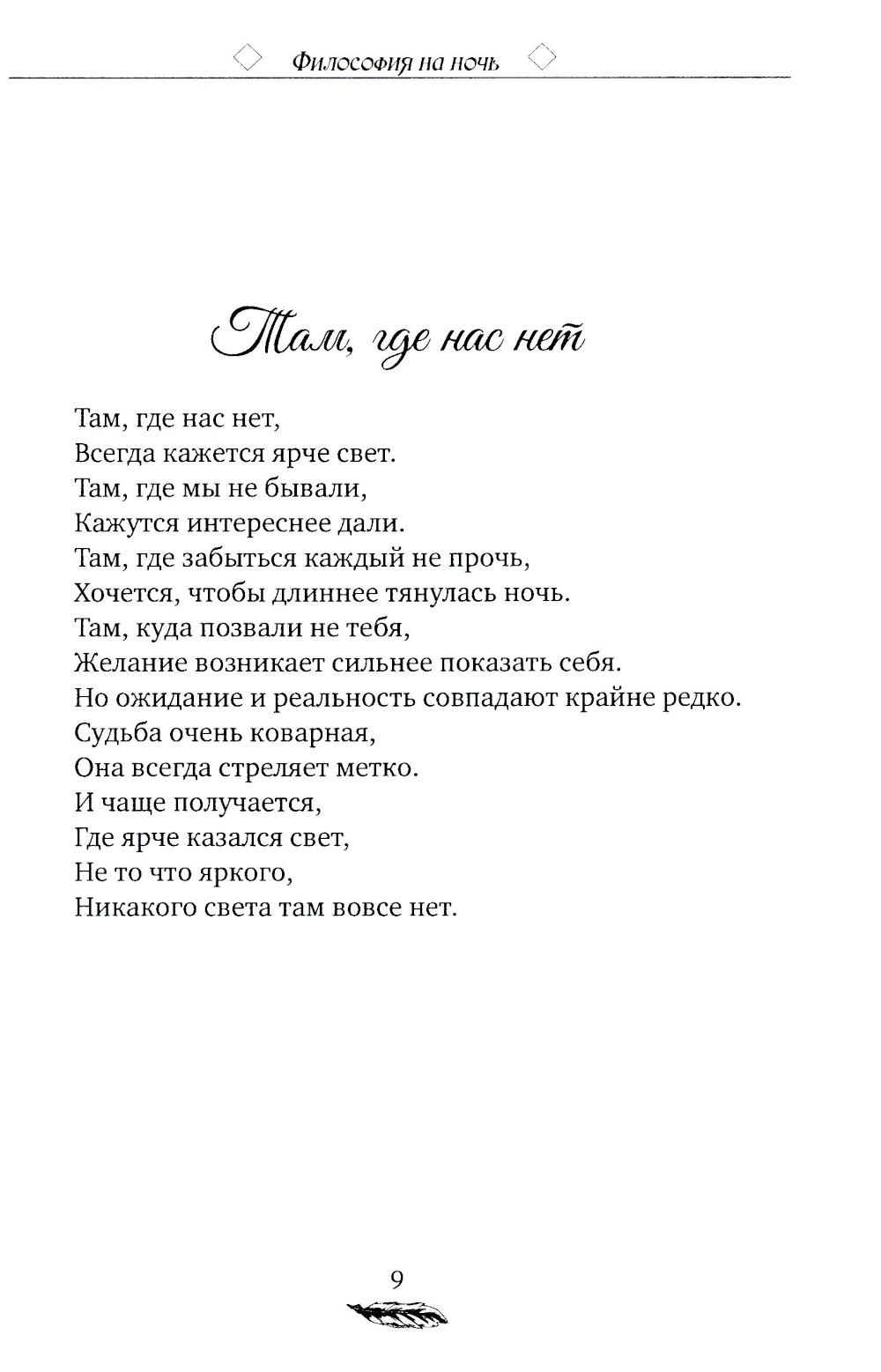 Этот сборник первый, но абсолютно уверена, не единственный. Его название продиктовано временем суток, в которое большинство из стихов и было написано. Вдохновение - очень непредсказуемое состояние. Очень часто оно «приходит» ночью. Но бывало, что и утро, день способствовали творчеству. Так было написано стихотворение «Я оставлю тебя у Ленина» (одно из моих любимых). Ласково, красиво упал луч летнего солнца на памятник вождя, и стоящая рядом лавочка в моменте вдохновили на строки этого стиха. Большинство стихов этого сборника - мои рассуждения, мысли и оформление прожитых эмоций от историй людей, встречающихся на жизненном пути. И конечно же личных историй. Мне очень часто проще выразить суть рифмой, чем прозой. Пусть и рифмы бывают нестандартные, ритмика кажется нарушенной. Но это то, как я чувствую слова, передающие эмоции и состояния. За то, что этот первый сборник появился на свет в оформленном виде, я благодарю моего близкого друга Антона Венгерова, который, бессомнительно, помог осуществить план по его публикации. Также благодарю ещё одного хорошего человека - Антона Закирзакова, чьё обучение простимулировало меня достать из стола написанное мной за несколько лет и начать делать уверенные шаги к своей счастливой бабушке в будущем, с реализацией её мечт и планов. Всем моим близким друзьям, родственникам и людям, которые меня поддерживают, я выражаю свою огромную, искреннюю благодарность. Обещаю, что это только начало пути. Всем незнакомым мне читателям хочу сказать, что если хотя бы один стих из этого сборника вам понравился или чем-то откликнулся в сердце, то вы даже на расстоянии сделали меня чуточку счастливее, за что я и вас благодарю от всей души.| Издательство | Рипол Классик |