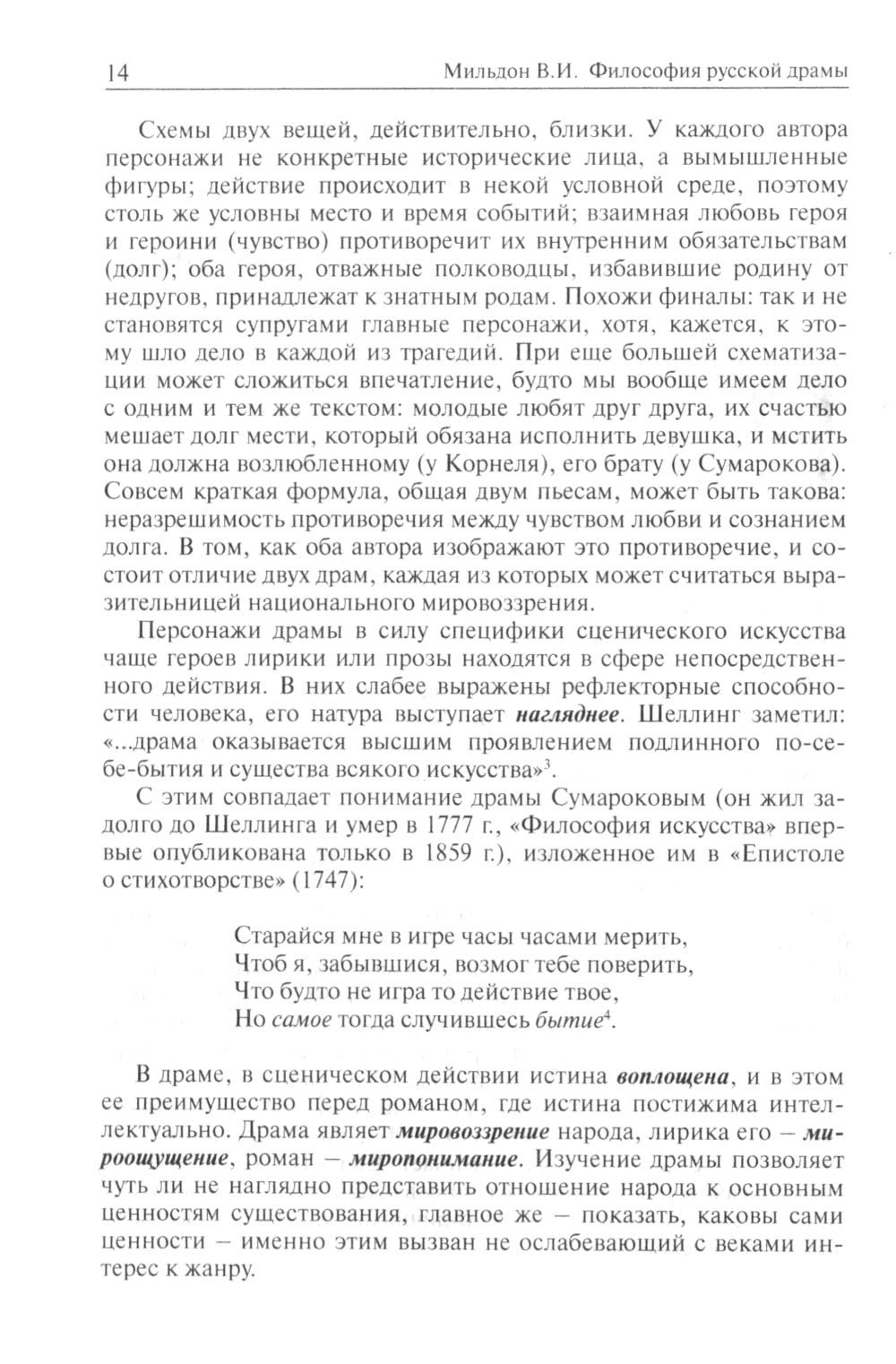 Книга В.И. Мильдона - событие в интеллектуальной жизни России. Эта книга о глубинных смыслах, заключенных в текстах русских мыслителей, о философских проблемах, над которыми несколько веков бьется вся просвещенная русская мысль. Она является продолжением книги 'Открылась бездна'. Образы места и времени в классической русской драме', но в ней автор открывает новые художественные смыслы в хорошо знакомом драматургическом материале и в первой части 'Вершины русской драмы' он освещает творчество И.С. Тургенева, А.К. Толстого, А.В. Сухово-Кобылина, а вторую часть, 'Философия русской драмы: Мир Островского', посвящает творчеству замечательного русского автора, наиболее полно выразившего и положение человека в отечественной жизни, и его судьбу, вне зависимости от национальной принадлежности. И поэтому его творчество, оставаясь глубоко национальным, имеет общечеловеческое, общекультурное содержание и обнаруживает те духовные задачи, которые стоят перед современниками в России.
