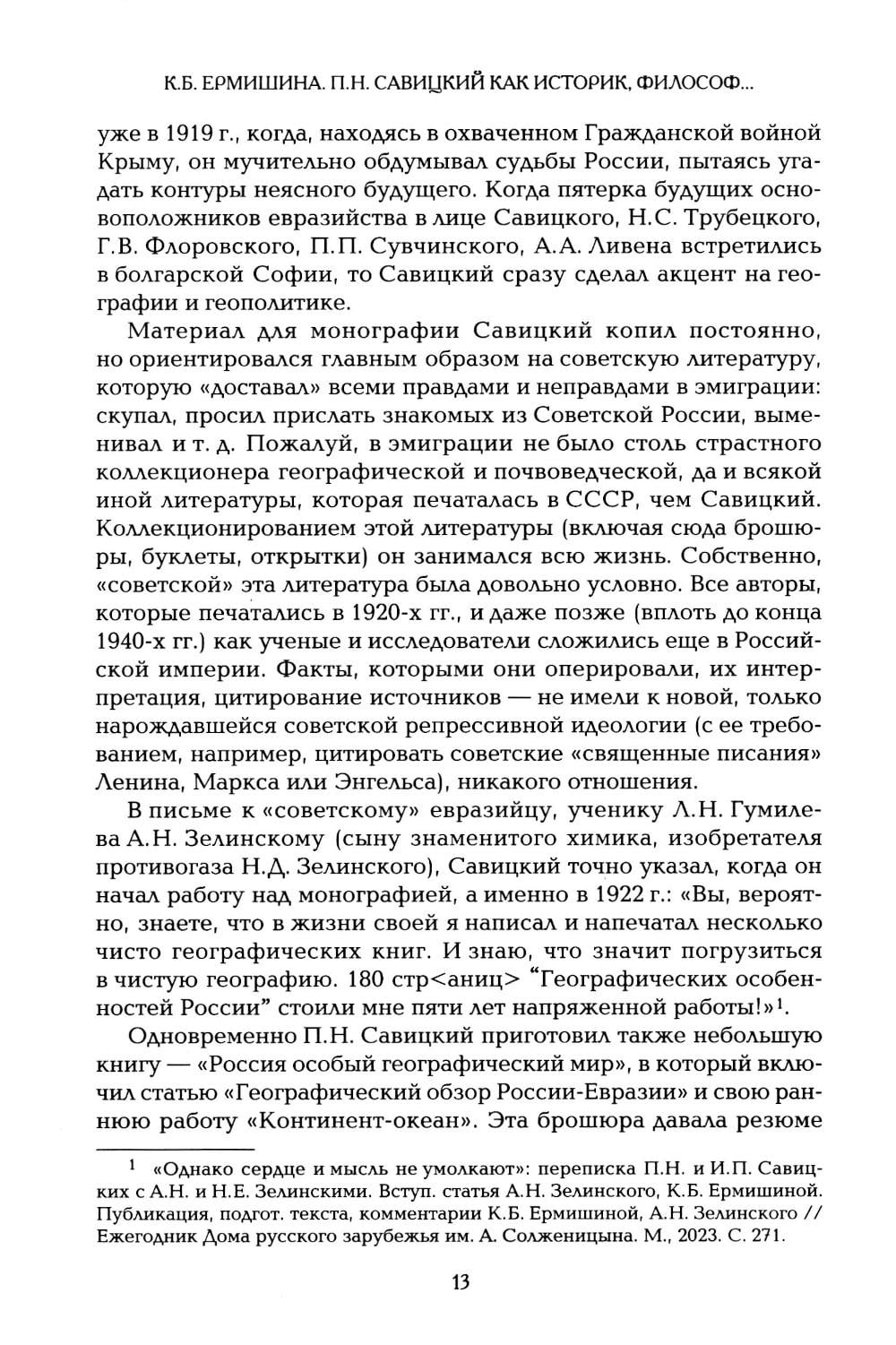 Книга «Философские и географические работы» основоположника и идеолога евразийства, выдающегося мыслителя, географа, историка, экономиста Петра Николаевича Савицкого (1895 - 1968) приурочена к его 130-летию и представляет систему воззрений мыслителя, воплощенную в ряд трудов. Впервые публикуемая на русском языке работа «Русская философия в пореволюционный период» раскрывает его историко-философские взгляды и предпочтения. Монография «Географические особенности России» не переиздавалась почти сто лет. Приводится впервые в полном объеме переиздаваемый труд «Географический обзор России-Евразии». Савицкий мыслил его как краткое резюме своих географических, геософских и историософских взглядов. Россия как таковая начинается, согласно Савицкому, с воссоединения с Украиной, с воцарения Петра Великого, с великих русских экспедиций - арктических и кругосветных, когда русские открывают Землю Александра I (Антарктиду), обследуют берега Северного Ледовитого океана, осваивают Дальний Восток, покоряют Туркестан. Только с этого момента мы имеем дело с Россией-Евразией, которая вступила в новую и новейшую историю на правах великой державы. Савицкий выступал за экономическое, политическое, культурное особенное позиционирование России, за самостоятельность ее пути, за отсутствие западопоклонства. Он видел главную опасность для русской культуры - в ощущении своей вторичности, едва ли не второсортности, в стремлении российских элит к отказу от собственного неповторимого евразийского пути. Главным «помощником» такого самоуничижения среди русских он считал невежество - незнание географии, истории, культуры своей страны, непонимание ее специфики. Книга сопровождена специально подготовленными вступительной статьей и обширными комментариями и адресована философам, специалистам по географии и истории и кругу заинтересованных читателей.| Издательство | Академический проект |